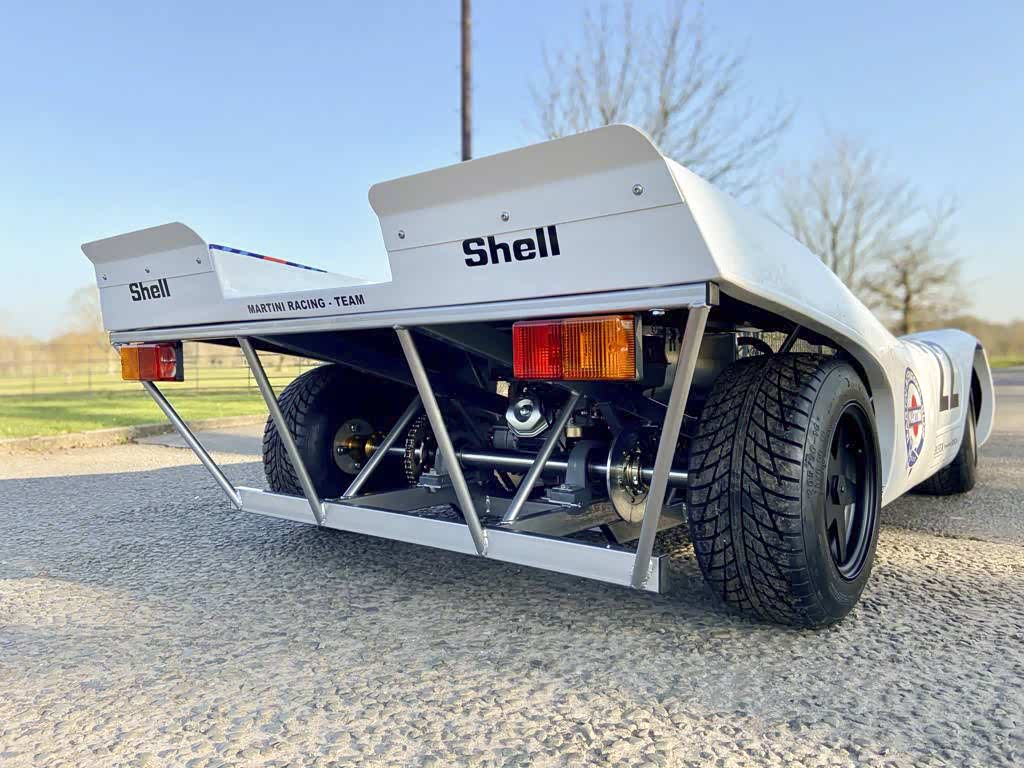 小保时捷917采用了钢制的骨架棚架,车辆的各个部件都用螺栓固定在这个中央框架上,一系列钢管支撑着优雅的玻璃纤维车身,而这个车身是以标志性的保时捷917作为原型。