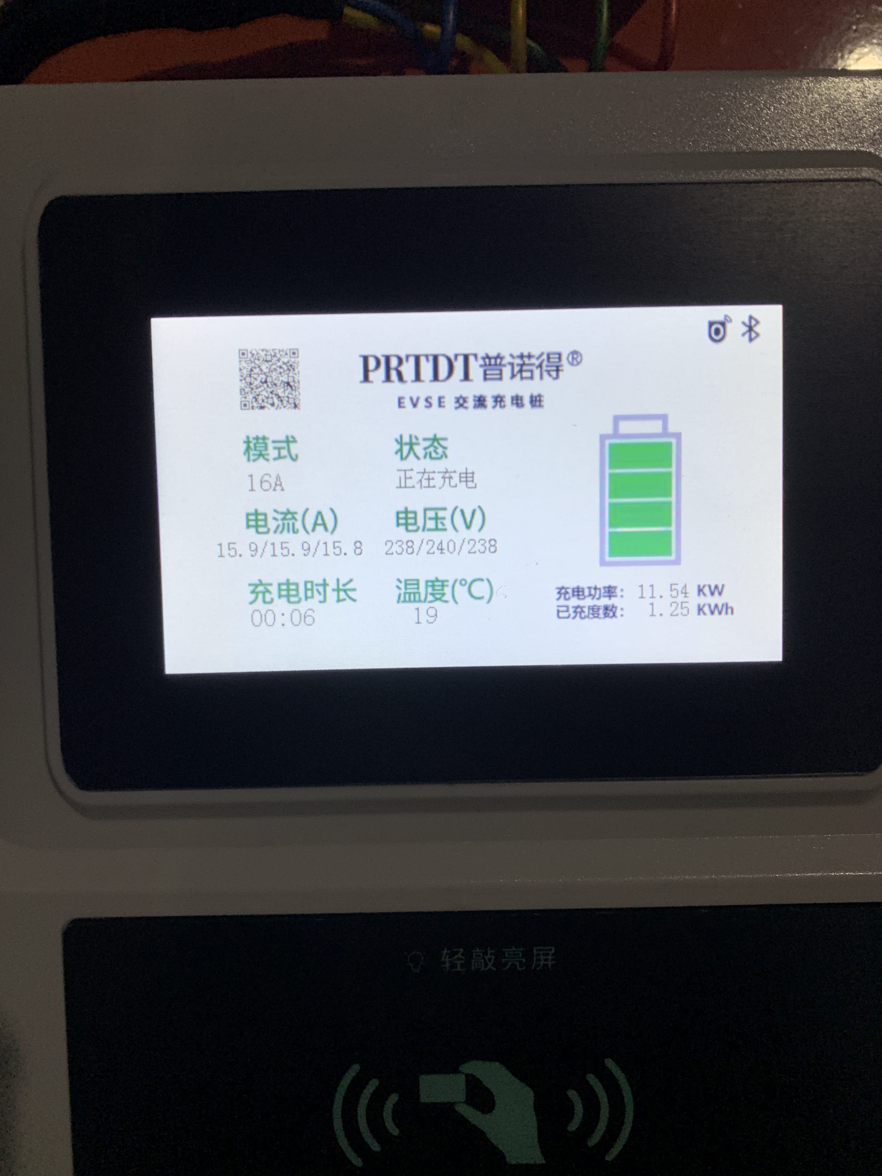 另外一个就是这款充电桩屏幕很大,显示直观,不需要每次都打开手机APP设置充电,省去很多麻烦。而且这款充电桩可以显示出三相电每一相的电压,如果哪一相没有接好,屏幕上电压显示是0,就很容易判断出哪里出了问题。