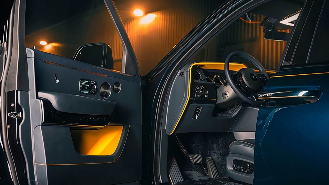 近日谷歌副总裁Ben Sloss就通过劳斯莱斯私人定制服务订购了一台库里南 Black Badge,他选择了派克峰蓝色作为车身外观涂装,同时选择了金色的腰线装饰,“BB版”上专属的22英寸轮圈被保留,但可以看到轮圈的背后选择了一套颜色更鲜明的黄色刹车卡钳。