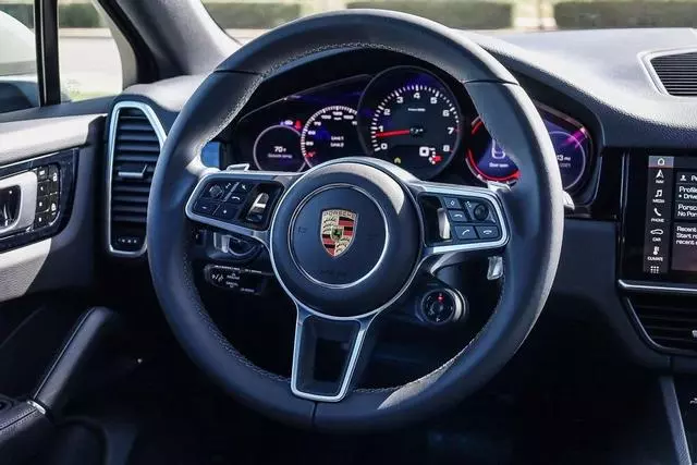 新款 保时捷卡宴,实拍。外观采用大气又很有档次感的设计,前脸的造型整体感很强又很有气势,引擎盖上隆起的筋条很有肌肉感,大尺寸的黑化横幅条格栅造型非常霸气,蛙眼大灯组造型神韵又富有科技感,内部结构精致,LED日间行车灯点亮后效果出色,前包围设计运动,前保险杠设计厚实,前脸处理大气。侧面轮廓运用了较多的圆润线条设计,非常有运动范,简洁的车身造型非常有豪华感,魁梧的车身造型带来很大气的风格,平缓的车顶线条以及倾斜较大的C柱设计带来很饱满的运动风格,大气的窗线造型很有气势,后视镜设计精致,车门凹面处理锋利,流畅的腰线设计简洁,轮拱造型很有立体感,黑化的轮毂采用很运动的设计风格。尾部采用很流行的贯穿式尾灯设计,饱满圆润的车尾造型很有大气感,排气采用双边共两出的设计提升了运动感。内饰中控采用对称的布局,车内采用全黑的风格,中控面板造型很有质感,精致的方向盘造型非常运动,中控屏幕设计时尚,空调出风口设计精致,挡把手感细腻,座椅宽大舒适,空间宽敞,做工精细,用料考究,整体氛围很有豪华气息。