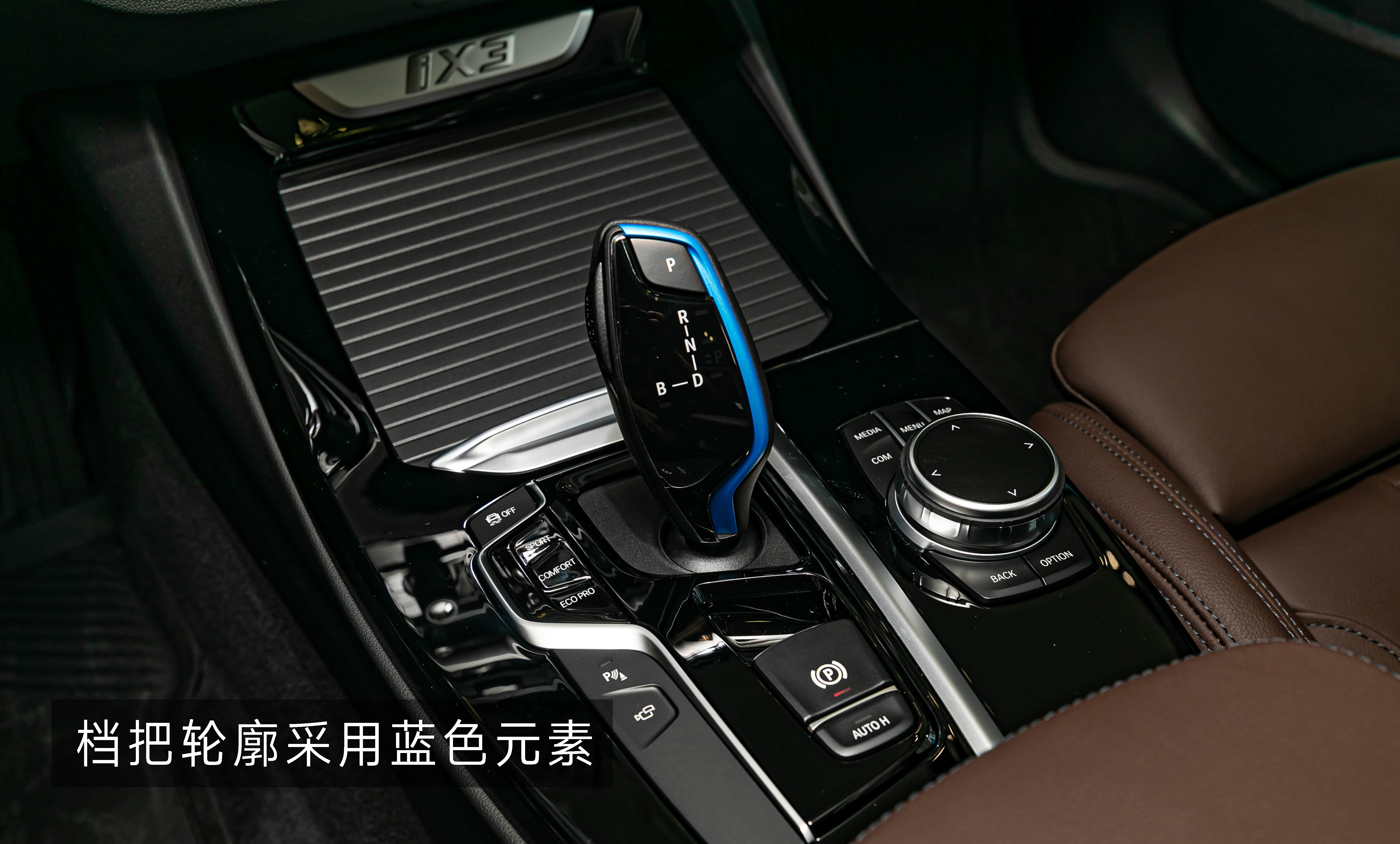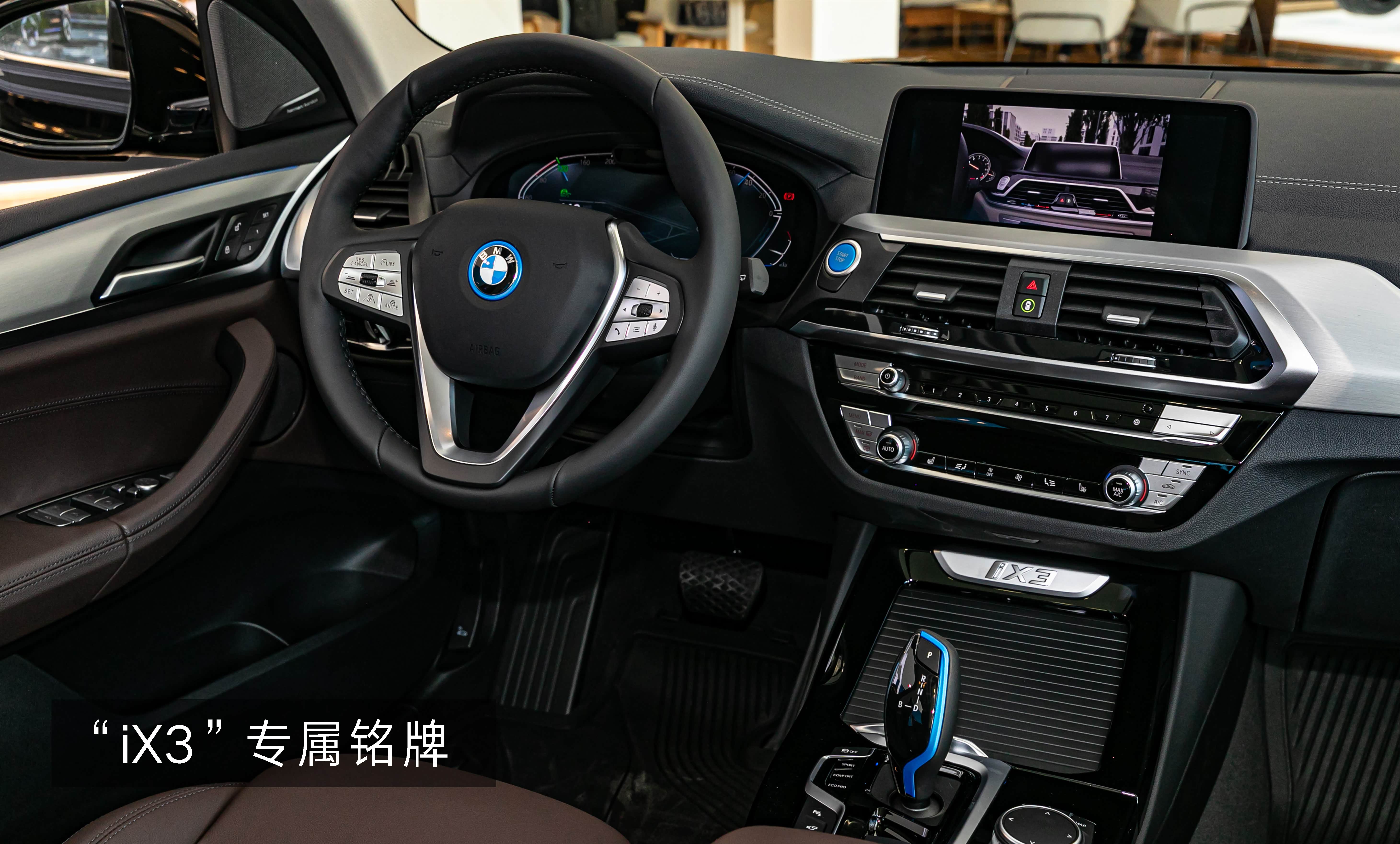 内饰部分,iX3与X3采用了相同的设计风格,12.3英寸全液晶仪表盘+10.25英寸中控屏的组合为车内营造出不错的科技感和豪华感,并且车机搭载了最新的iDrive 7.0的系统。主要的区别在方向盘上的徽标、档把轮廓、启动按键以及仪表盘底色采用了象征新能源的蓝色装饰,空调按键下方还拥有一块儿“iX3”的专属铭牌。同时,新车没有因为是新能源车型的身份而在内饰做工用料上有所削减,宝马品牌一贯的精良工艺在iX3上同样发挥得淋漓尽致。