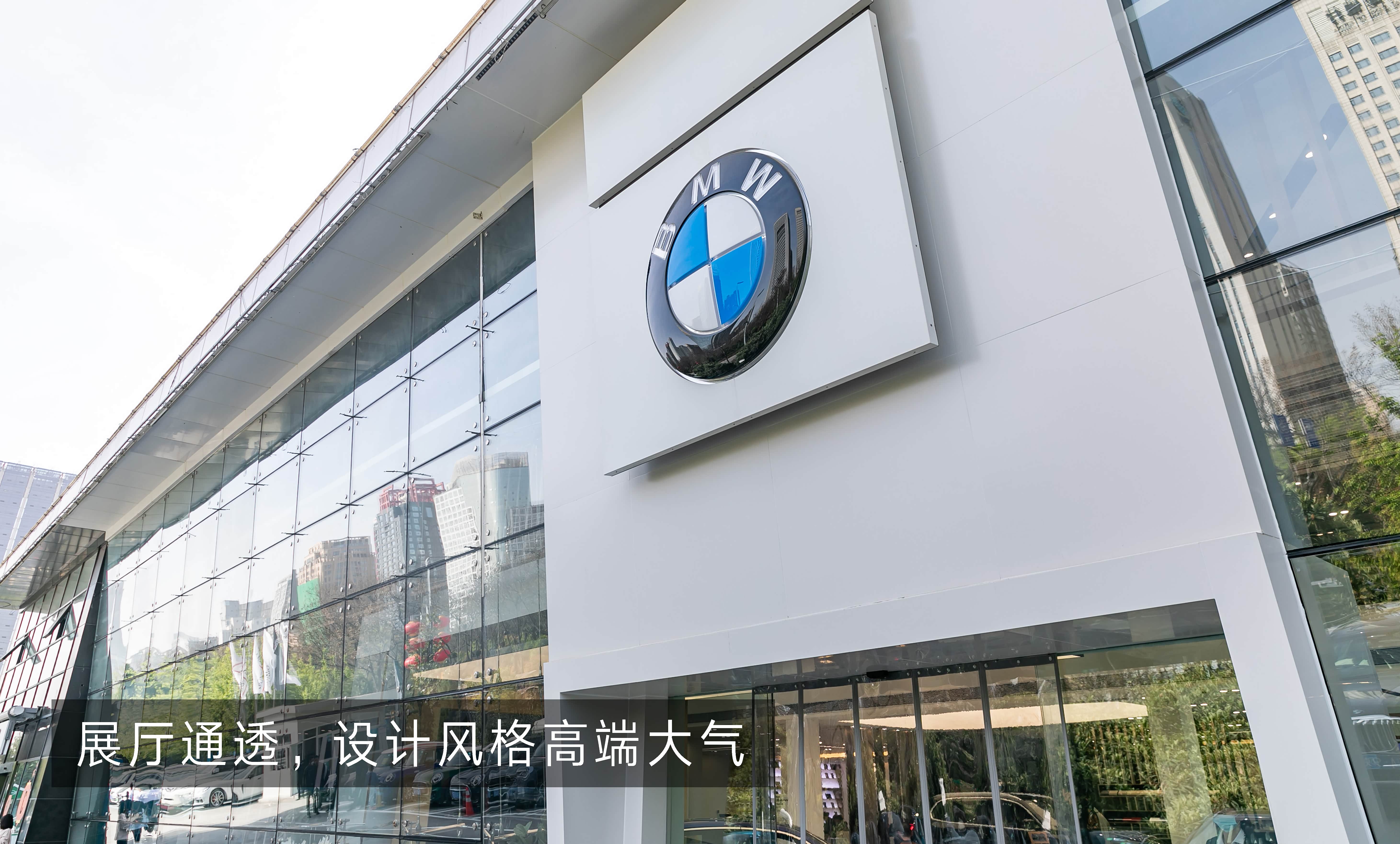 店面采用了通透式落地玻璃的设计,简约大气的设计在宝马品牌形象的加持下显得现代感与高级感十足。