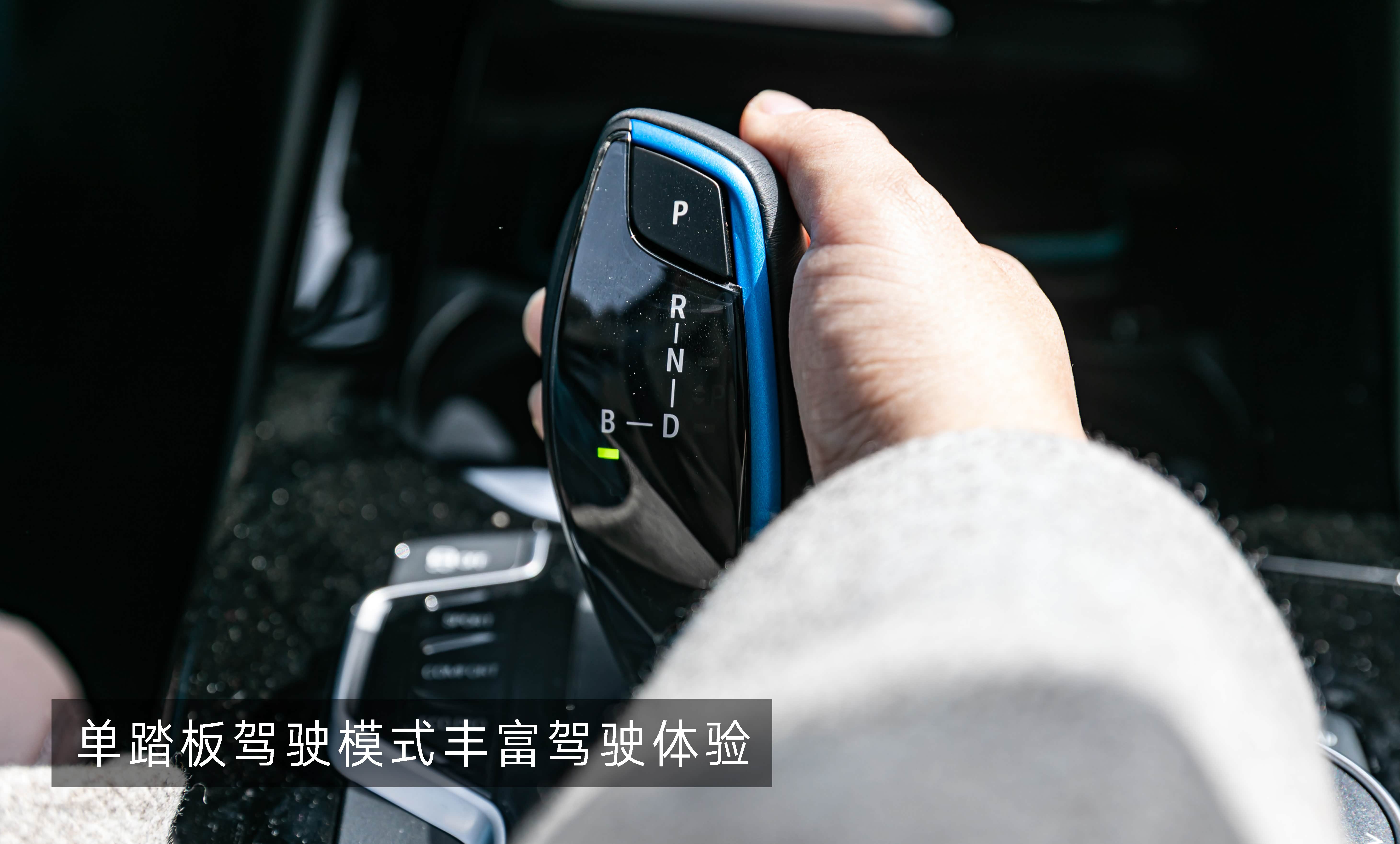 仔细看档把的左侧有一个“B档位”,这个档位是iX3 的单踏板驾驶模式,说白了就是只通过一个电门踏板就能控制车速,并且还会产生动能回收。新车还可以进行能量回收力度的调节,同时拥有自适应模式,开惯了燃油车的朋友肯定和我一样需要有适应过程,不过对于iX3来说是丰富了驾驶体验。