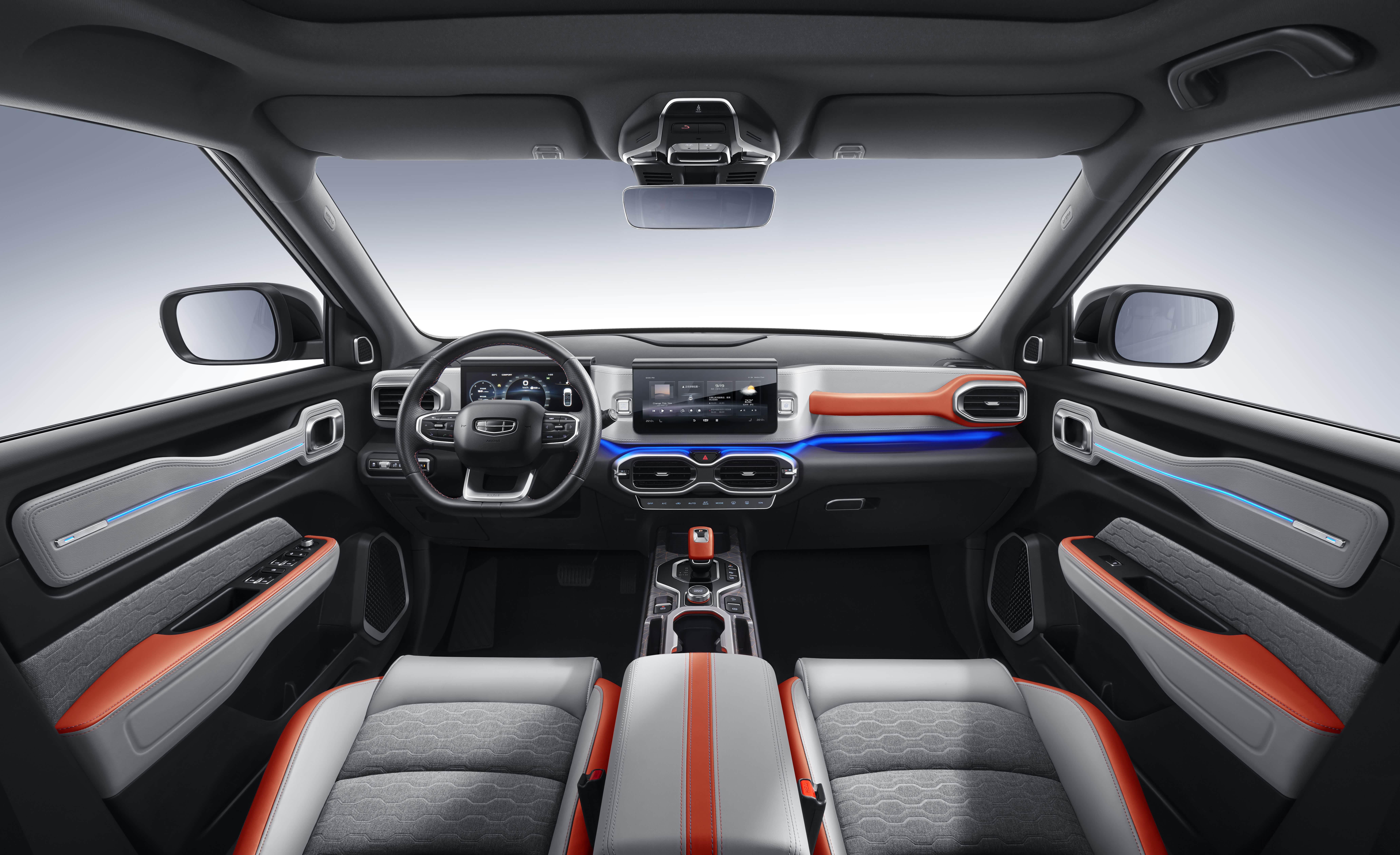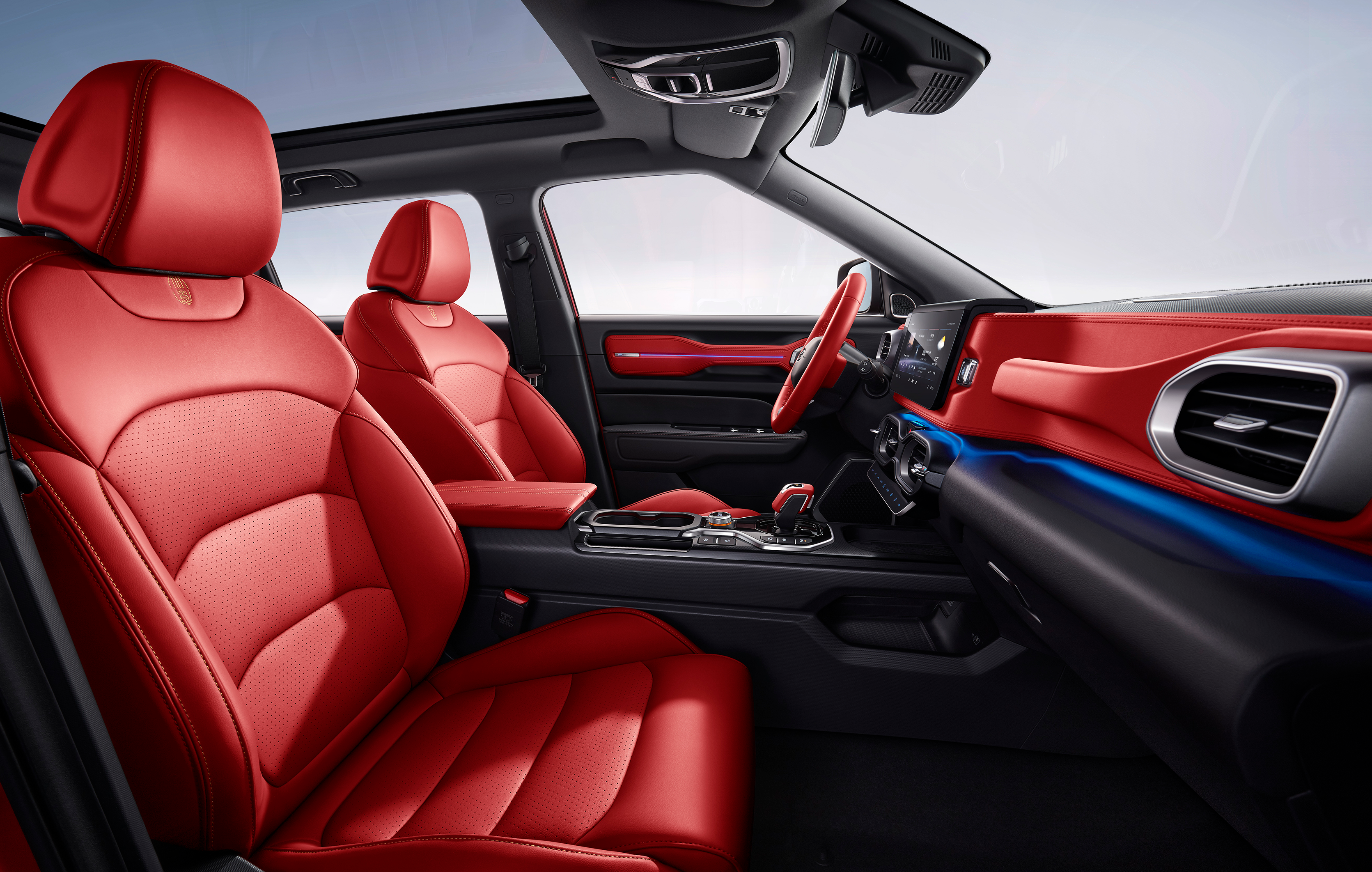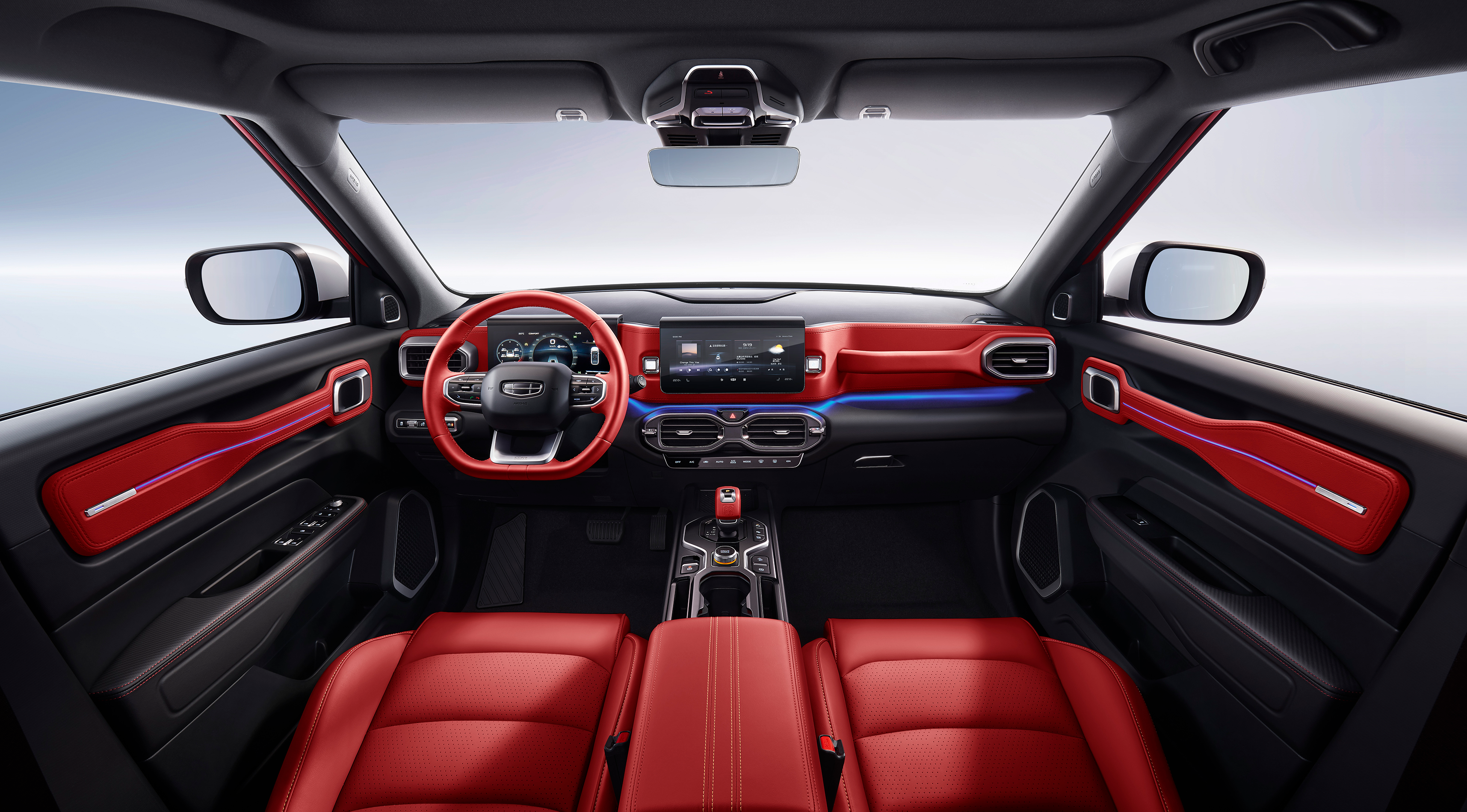 这两款车整体内饰布局都没有变化,配备有全液晶仪表盘、悬浮式中控屏、三幅式多功能方向盘以及电子挡把,内饰的线条和外形一样比较有棱角感,整体风格非常个性。