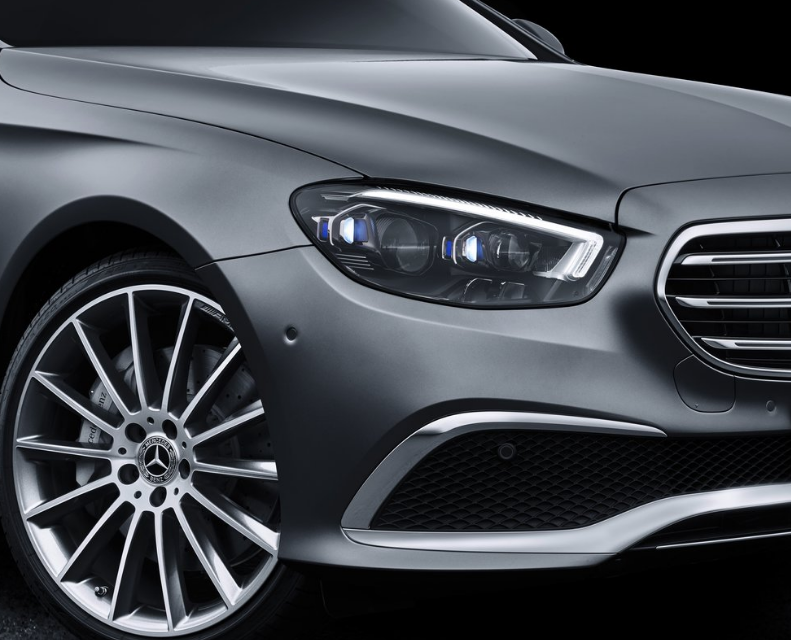 另一方面,如果这个梯形是正的,那也有两种可能,要么是全新奔驰C级,要么就是大标的奔驰E级。同时它们的区别也在于大灯,奔驰C级大灯是尖的,奔驰E级是圆的。