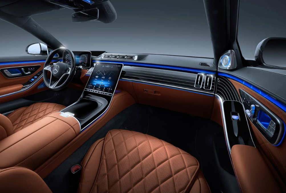 言归正传,两台车最直接的差异就是空间大小,坐进S级里面第一感受就是舒坦,宽敞,整个车的内饰氛围营造就有一种高级感,这种高级感来自中央通道的高分辨率屏幕,钢琴烤漆的装饰板以及棱角分明的出风口和厚实的座椅,据说这种高级感和穿晚礼服的小姐姐更搭。