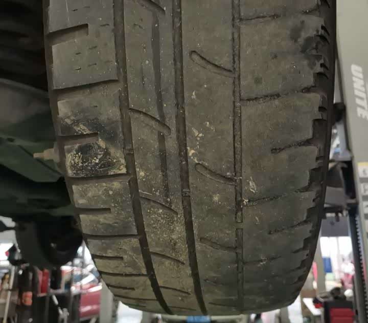 车辆的轮胎有三个都是换过了的,唯独这个右后轮没有更换,目前磨损有点偏大了,建议事后还是去更换吧。