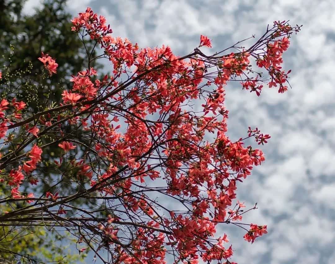 因为海拔较高,公路沿线的油菜花能开到月末甚至4月初。杜鹃花已在溪畔山脚怒放,清明节前后将会红透半山,介时红黄相映,必是一番盛景。