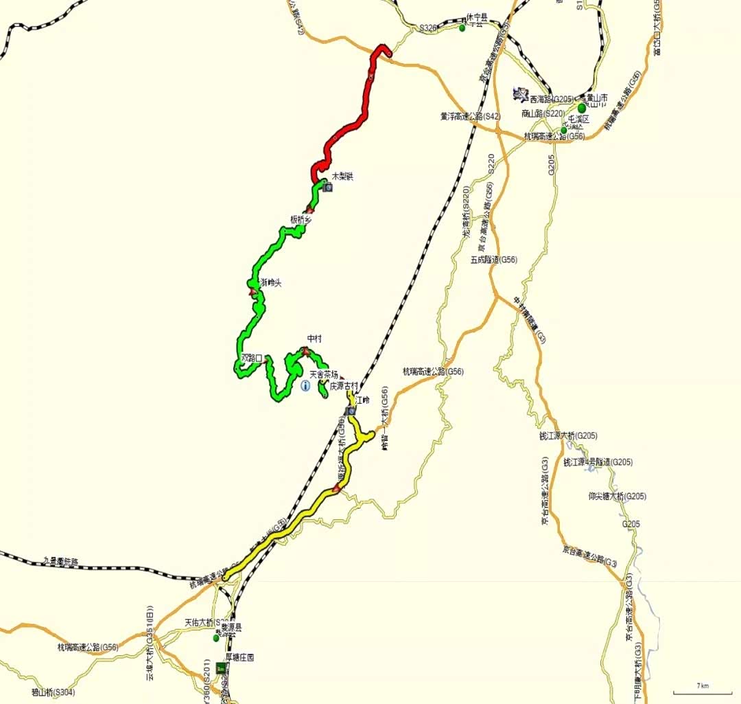行程:S214(松珍公路)——黄浮高速休宁出口——木梨硔村