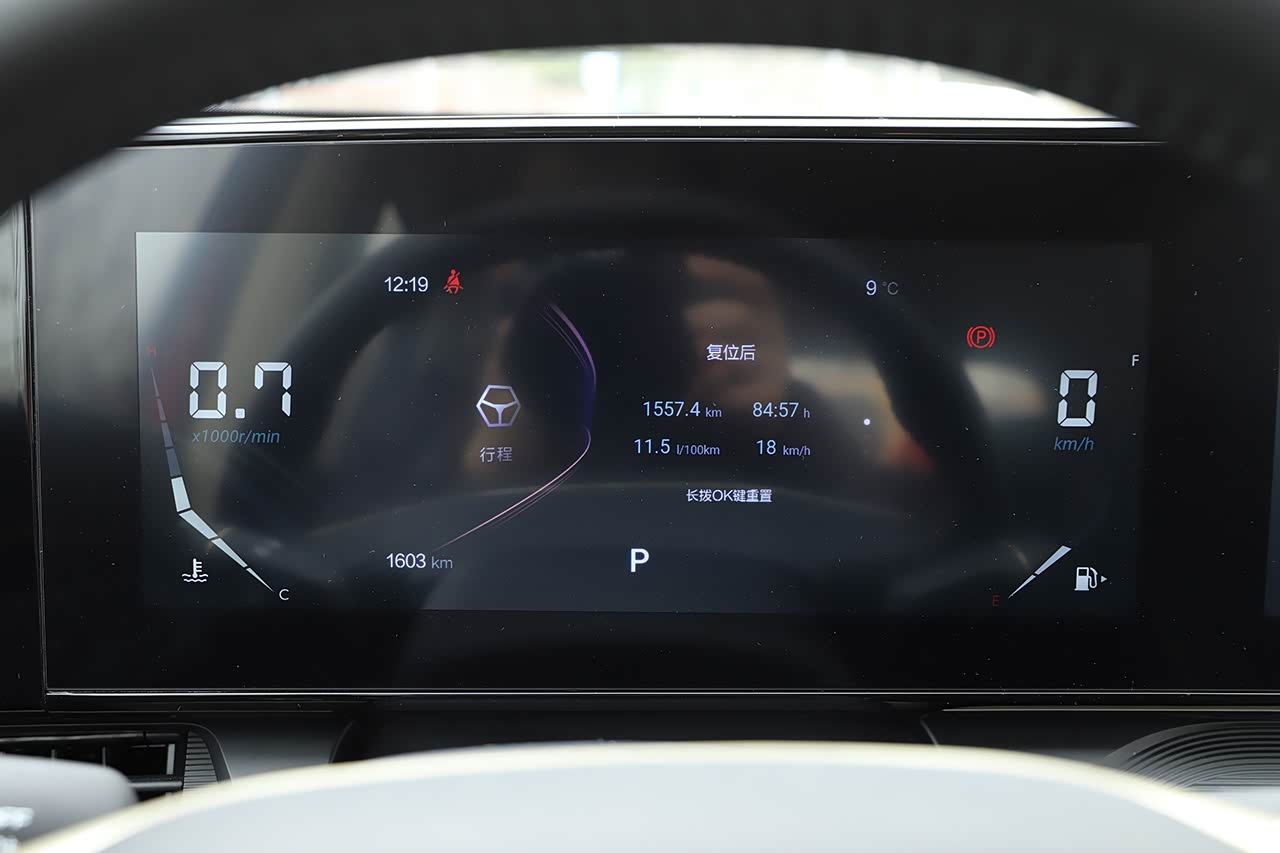 液晶仪表(中间是自由显示界面,两侧为固定界面)很好,但分辨率着实有些不够看,正常坐姿都可以感受到颗粒感,放到当下市场来说,这有些不太合适。