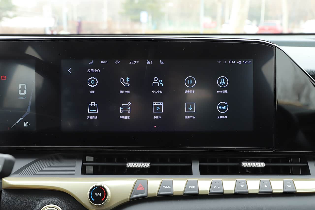刚才已经提到了,刚进入车内,奔腾T55的内饰给我感觉很好,方向盘握感、电子挡杆的位置、中央扶手的高度等等都很适合,但是通电着车之后我就遇到了第一问题——车机系统载入速度偏慢,我不太确定是载入速度过慢,还是说官方设计的开机画面时间太长了,总之不能立刻使用。