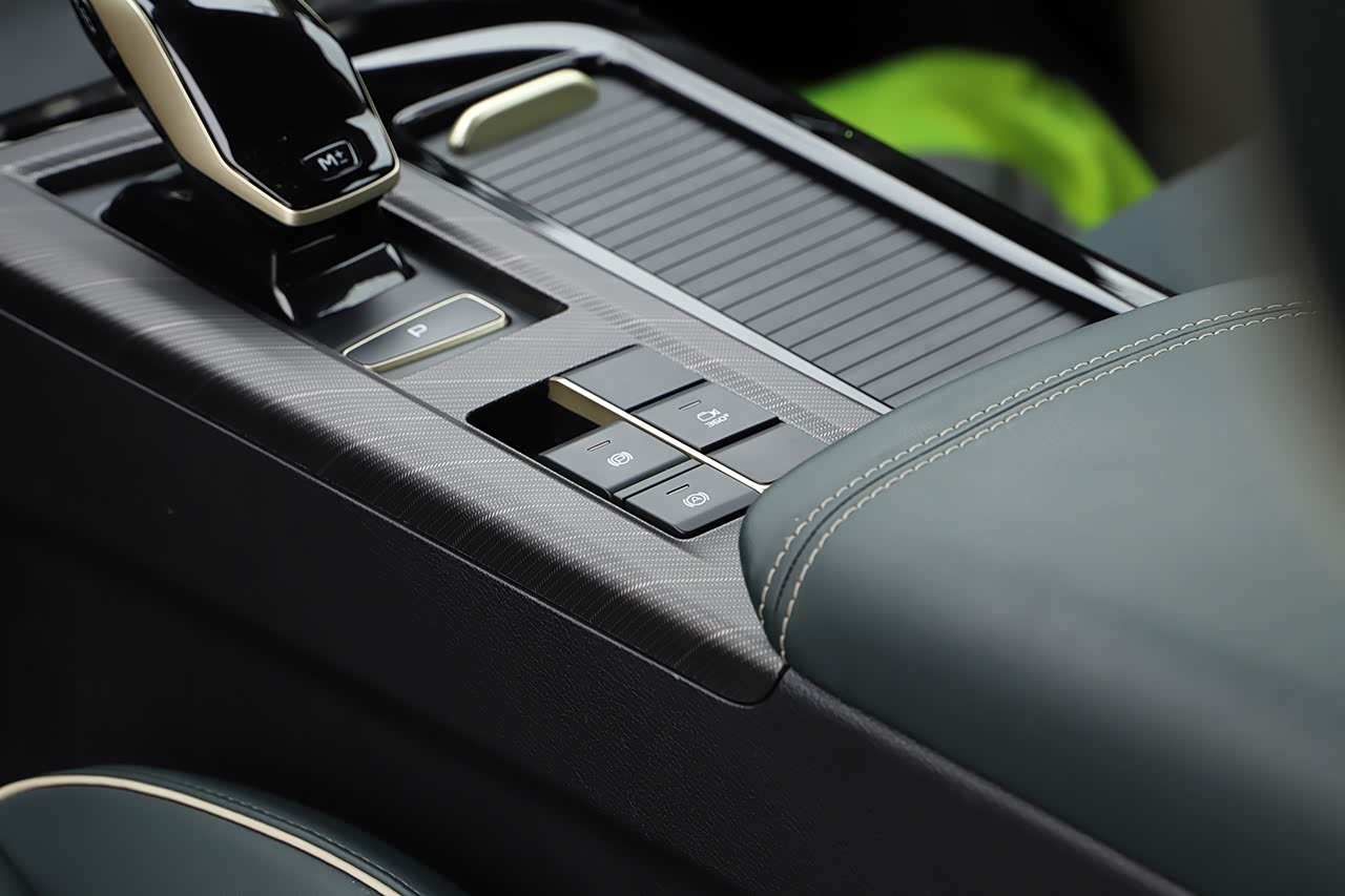 电子挡杆好评,造型很高级,并且贴合手掌,位置也比较符合人机工程学,正常身材的驾驶者使用时,手可以很自然的搭上去,不需要刻意伸缩手臂。