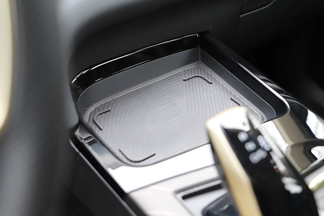 排挡杆前方是一个空间很大的置物区,下方有无线充电,用起来非常方便。
