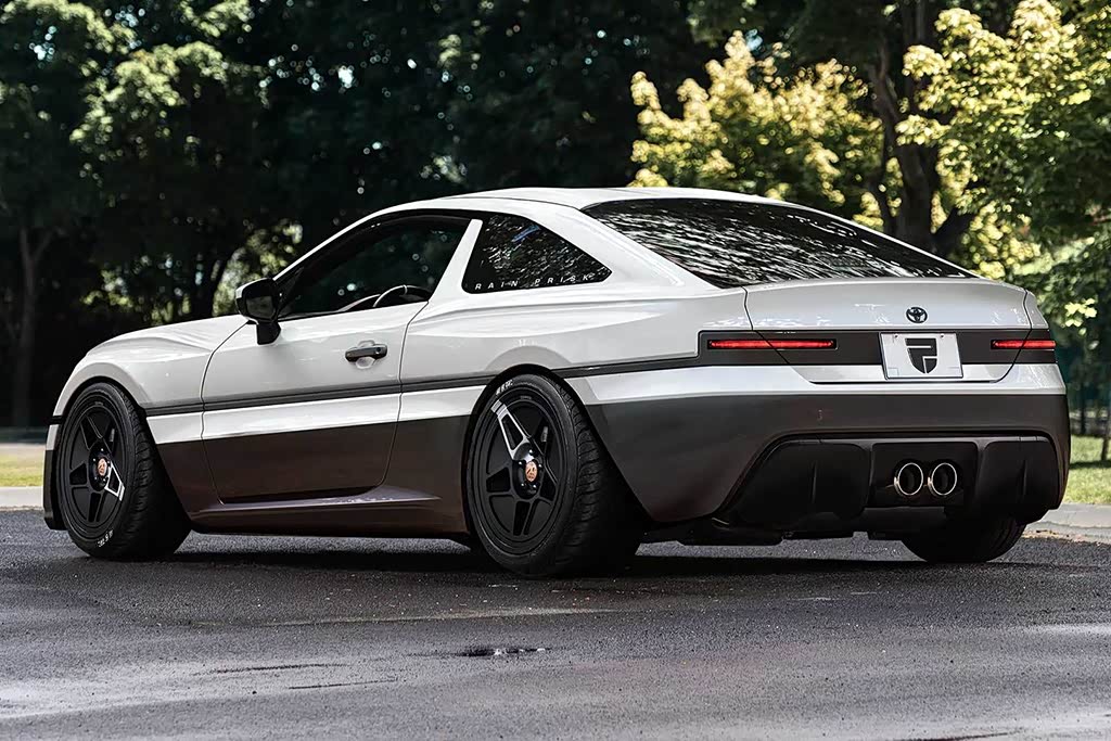 从车尾来看,新车采用了溜背式的造型设计,尾灯组与头灯前后呼应,并在周围加入了黑色的饰条,下方的中置双出排气看上去运动感十足。据设计师介绍,这套渲染图是以此前的GT86为原型,并将AE86的设计精髓融入其中,而白黑的经典配色也是取自AE86车型。