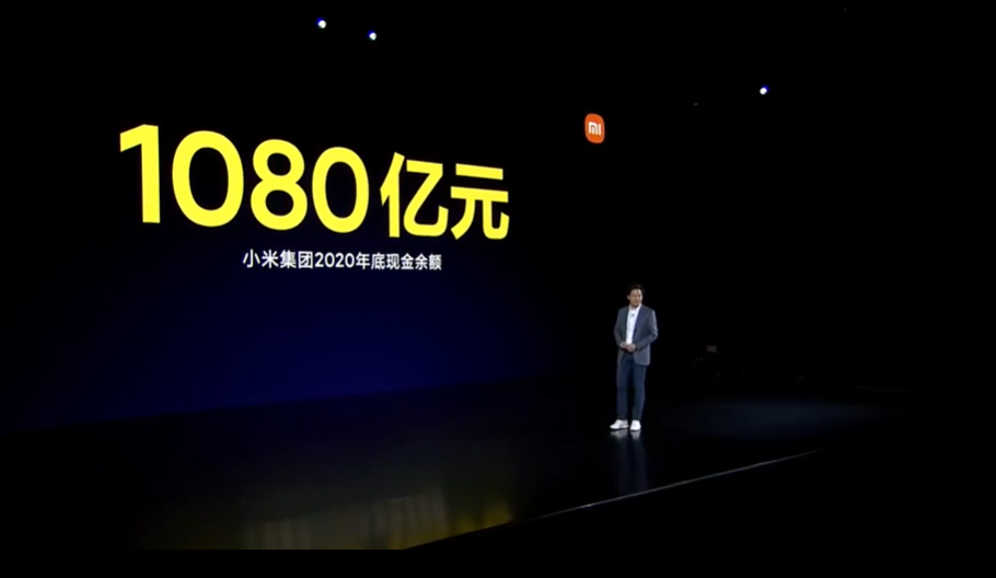 还有全球最好的智能生态。好,说实话,还有我们亏得起,我觉得10年来,小米积累的现金的总量在12月底的财报里面1080亿,1080亿,我觉得我们拥有这样的现金储备,如果我们不认真的打一仗的话,我们真的有点愧对全球米粉对小米的支持。