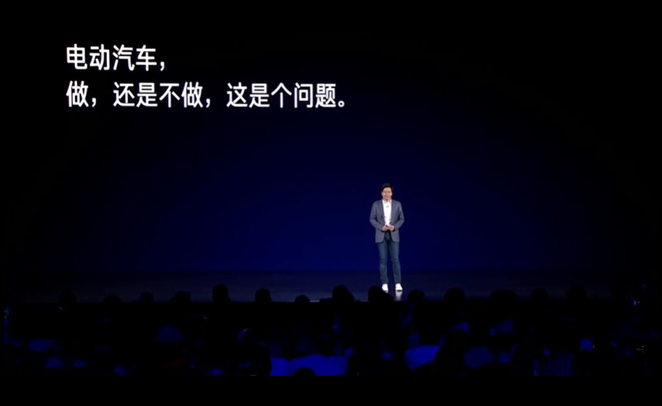其实我在想大家是怎么想,我是从认真的去琢磨了这个问题,我觉得大家是这么想。第一个,在过去的11年里面,小米已经做成了非常多款产品,大家相信我们有能力做一两能让大家惊喜的好车是吗?而且大家相信我们已经拥有行业最完善的智能生态,还有全球这么多米粉的支持,只要造出来就一定卖得出去是吗?