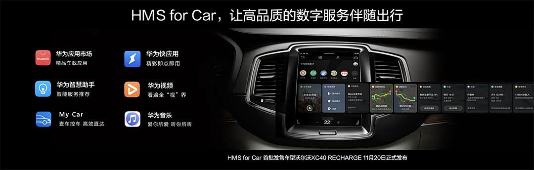 为了实现这一目标,HMS for Car融入了为车载用户提供的一整套自有应用服务HMS Apps for Car,包括华为智慧助手、华为音乐&视频、My Car、华为快应用、华为应用市场等服务产品。