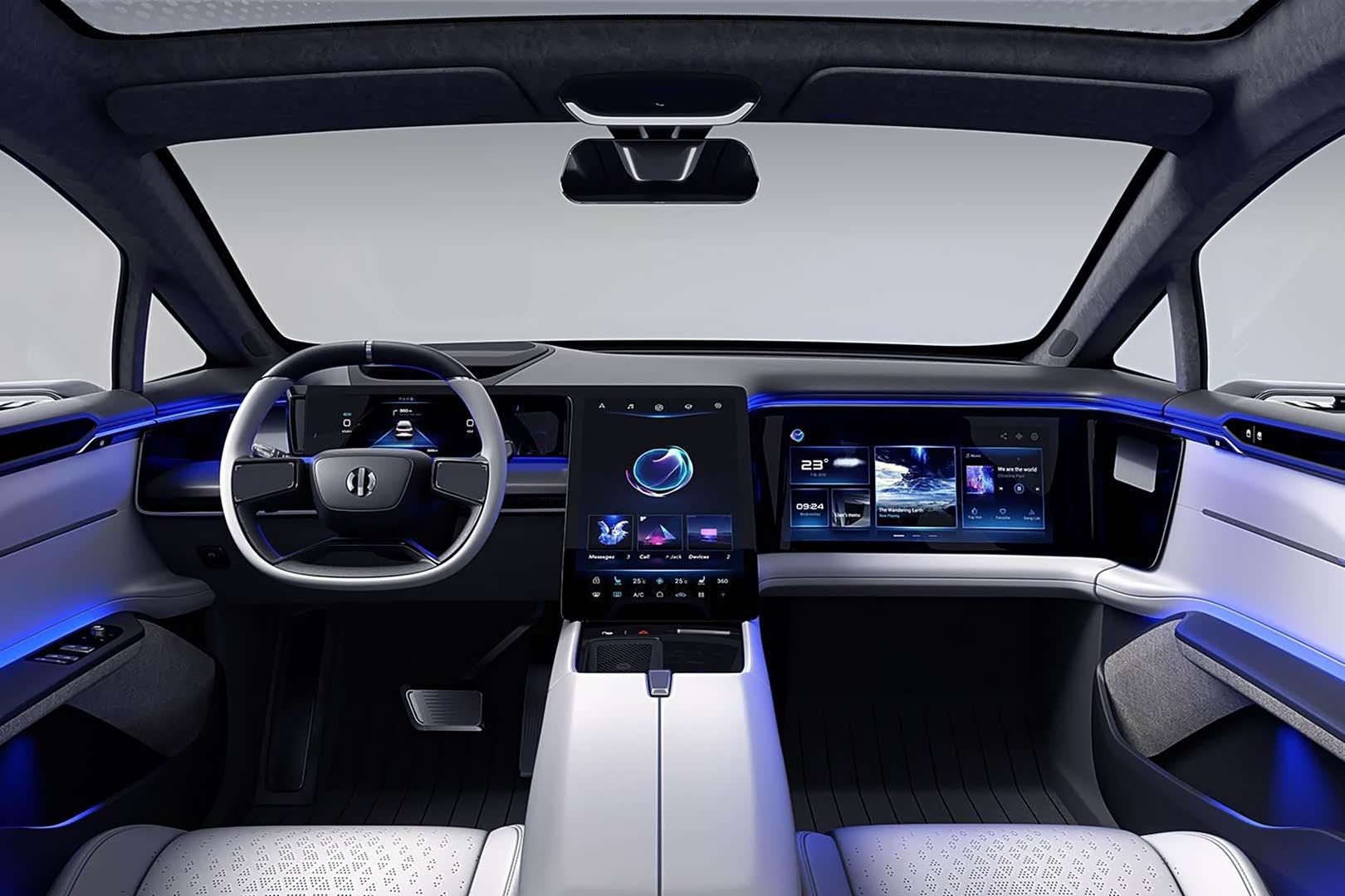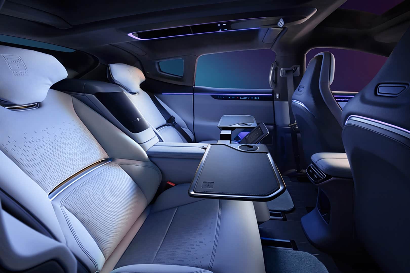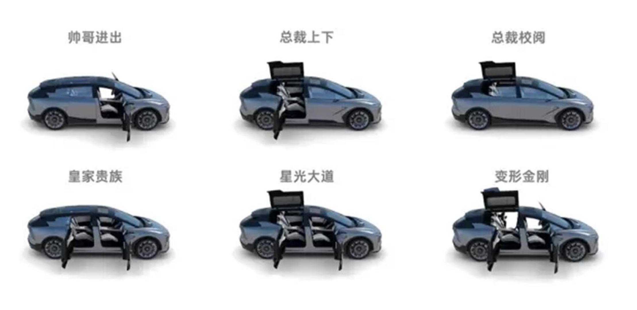 接下来的创新点就需要打开车门才能够发现,高合HiPhi X给出了六种进出车辆的方式,其后排车门向后开启,同时还可将车顶展开方便进入,一种尊贵感油然而生,当然等待它电动开启的过程实在有些缓慢,其实完全不如普通车门来得方便。