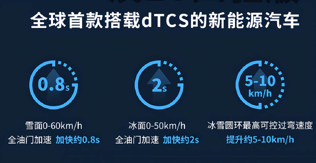 dTCS即为distributed TCS缩写,中文全名为:分布式牵引力控制系统,该系统专门适用于电动汽车的驱动力控制,为保证车辆在冰雪、湿滑等低摩擦系数路面获得更多附着力,进而让轮胎有效减少打滑,确保驾驶安全。