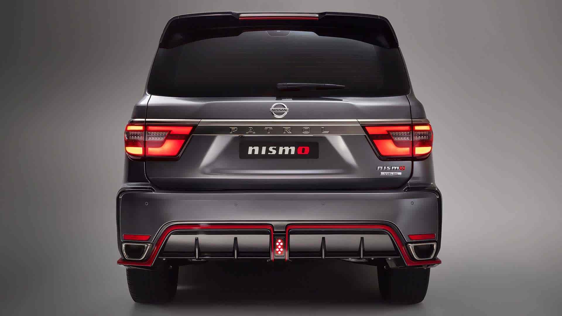 车身侧面,新款途乐Nismo针对细节进行了调整,保持了整体硬朗的线条,后视镜采用黑色处理,搭配22英寸的运动大轮毂,增添了新车的时尚气息。车尾部分,新款途乐Nismo加入视觉冲击力极强的后包围,带有大尺寸后扩散器和类似F1赛车的领航灯,提升了整车的视觉效果。新车除了提供官图中的灰色外,还提供珍珠白、黑色以及金属银等车身涂装。