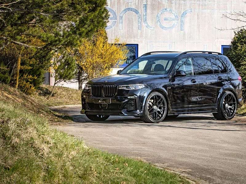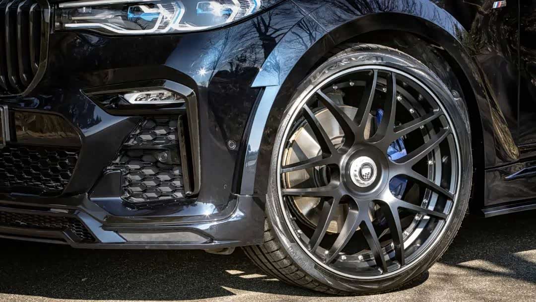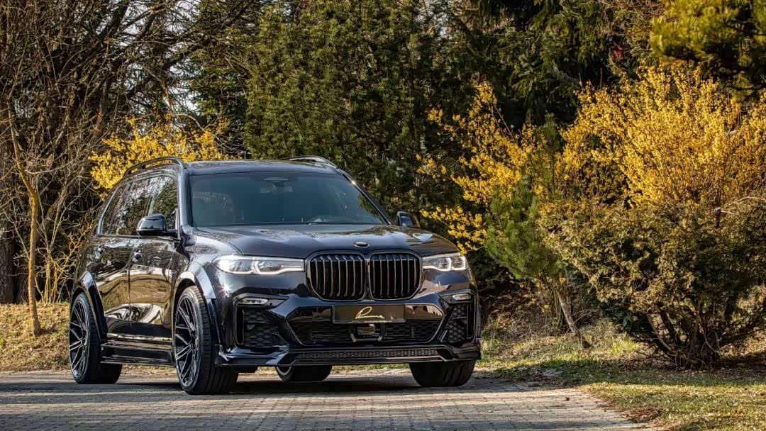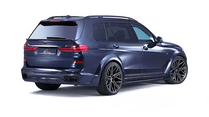 原本的MSport外观为基础进行视觉强化,全车增加更夸张的下扰流部件,更为两侧各增加50mm的宽体叶子板/外扩轮拱,使得原本霸气的X7拥有更强健的身姿,配上黑化的肾形水箱罩,使车辆整体风格有明显转变,“黑武士”般杀气十足!
