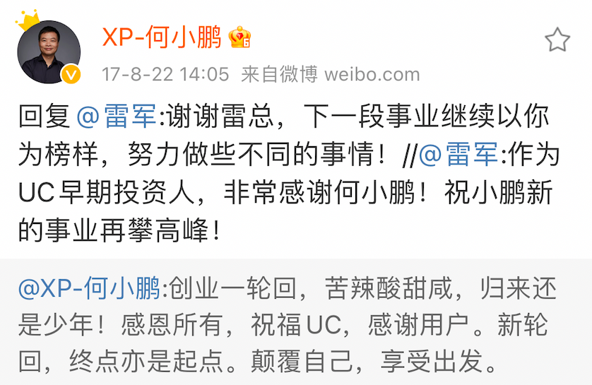 不但如此,他说七八年来投资了近十家电动车公司。小鹏汽车创始人何小鹏,曾在微博上三次感谢雷军,小鹏汽车官博也称:和小米公司一起,一往无前!