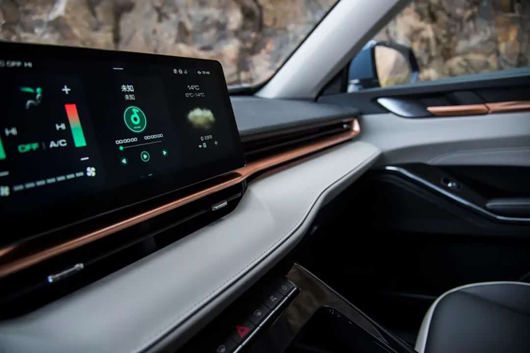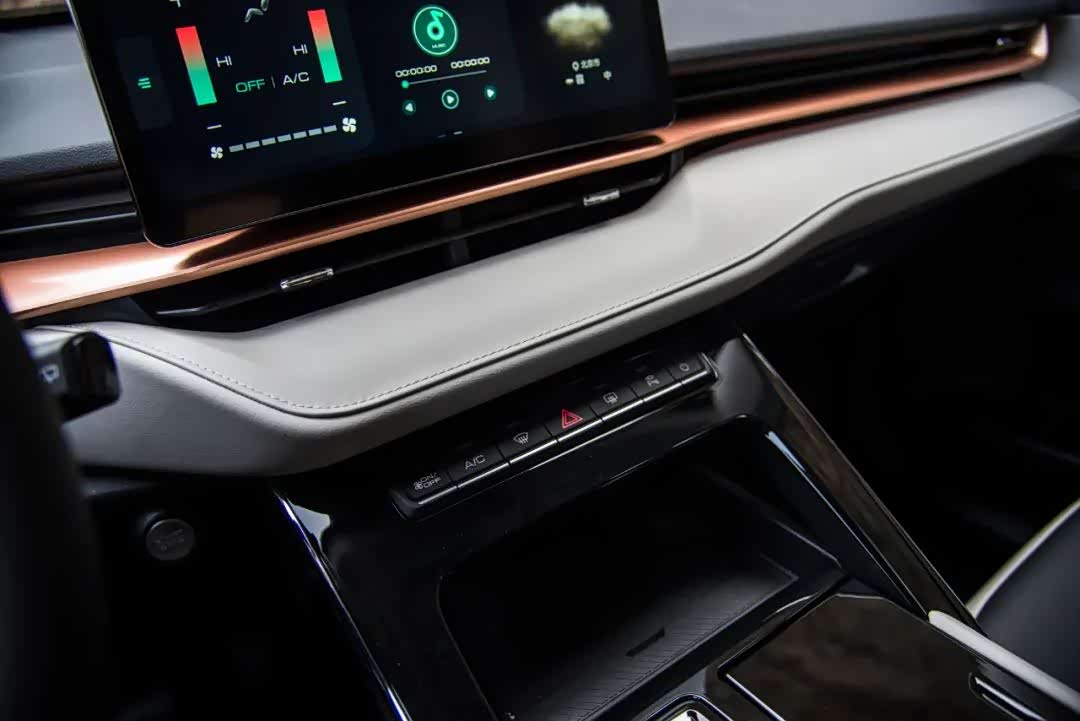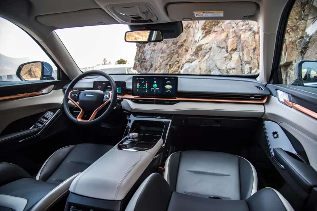 第三代哈弗H6的内饰造型实在是太惊艳了,毫不夸张的说,几乎就是概念车级别的,以至于你完全没法从它的内饰找到一点跟外观的联系。中控台的层次感与立体感几乎是点满了,并且用料也很讲究,大面积的软塑只是基本操作,中间区域还有带有缝线设计的皮质包裹。
