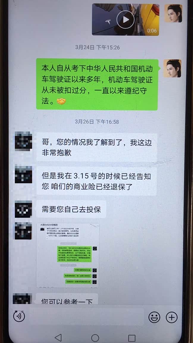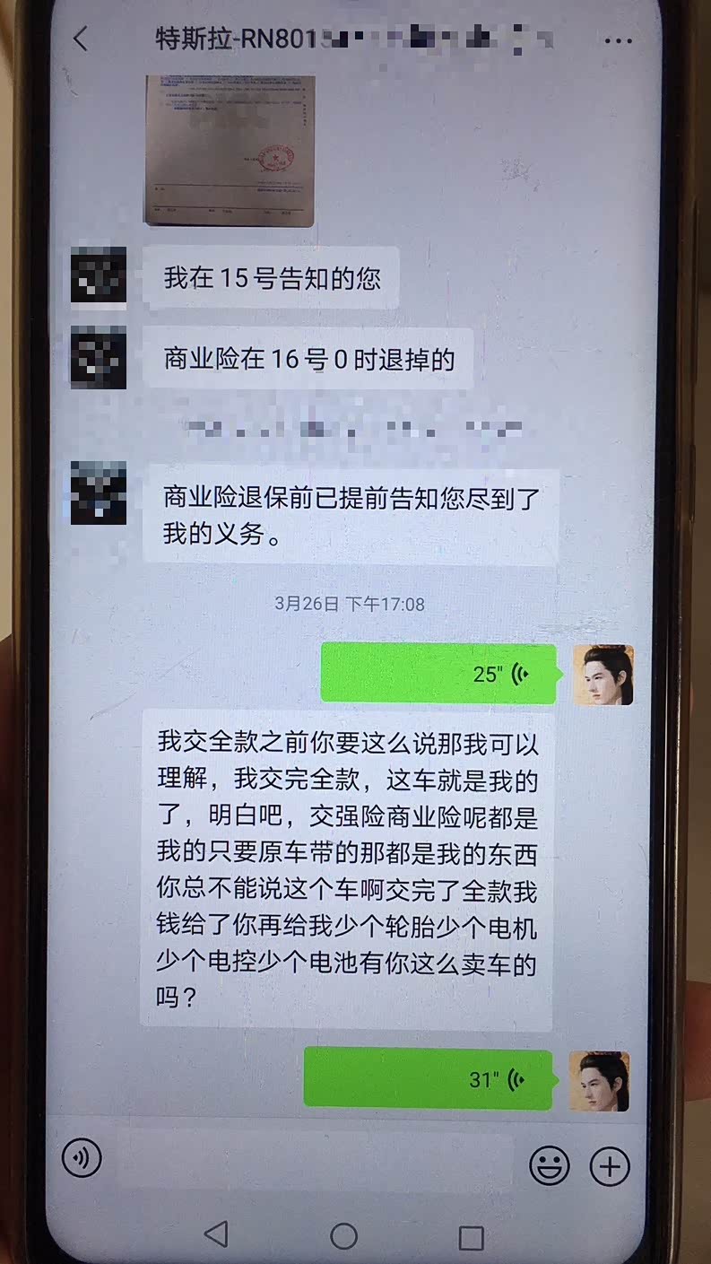 不仅如此,买车的时候对方表示保险全部都可以随车过户,但在出保单的时候,对方表示只能过户交强险,商业险要退缴。“无论是买车,还是在此前提档的时候,他们都承诺,第一时间能够给保险过户。如果不能提供商业险过户,为什么不在合同中写好,或者是在我提车之前就将保险退掉,现在这辆车我已经全款买下,那商业险理应是我的。”