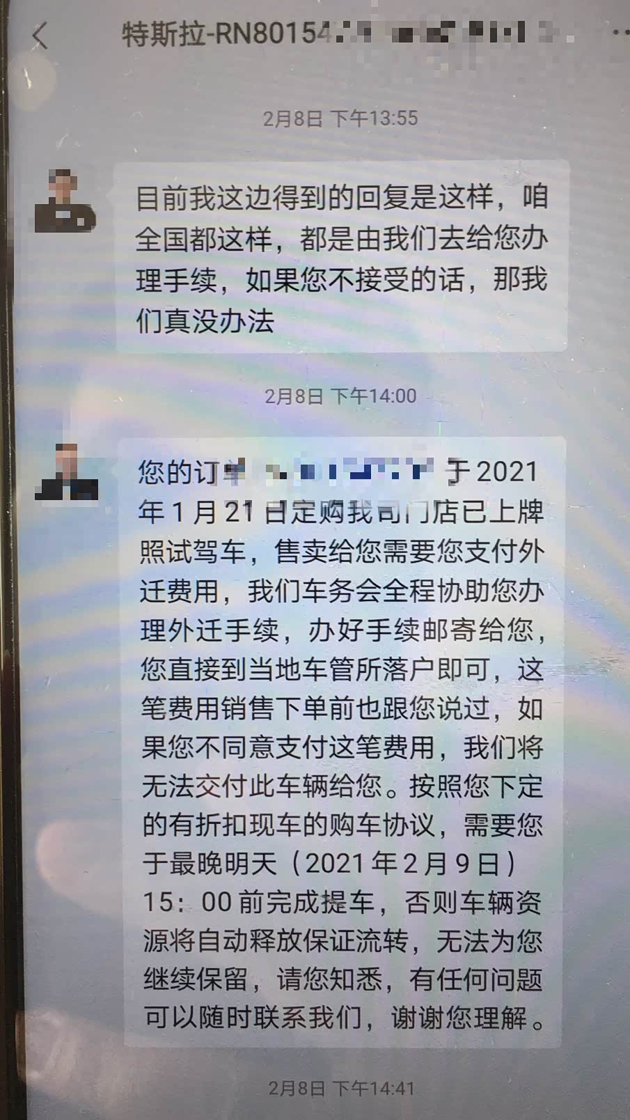 事情要追溯到今年年初。1月,李先生在特斯拉石家庄交付中心看上了一辆低价出售的服务车。据他介绍,这款车的出厂时间是在去年6月份,上牌日期是11月26日。期间曾在天津出售给了一位山西的用户,但在还没有办理上牌手续的时候,车辆电机就出现了问题,所以那位用户当时就选择了退车。随后回厂更换电机之后,这辆车就被特斯拉征收为内部服务车辆,在交付中心内部作为工作人员的代步工具。