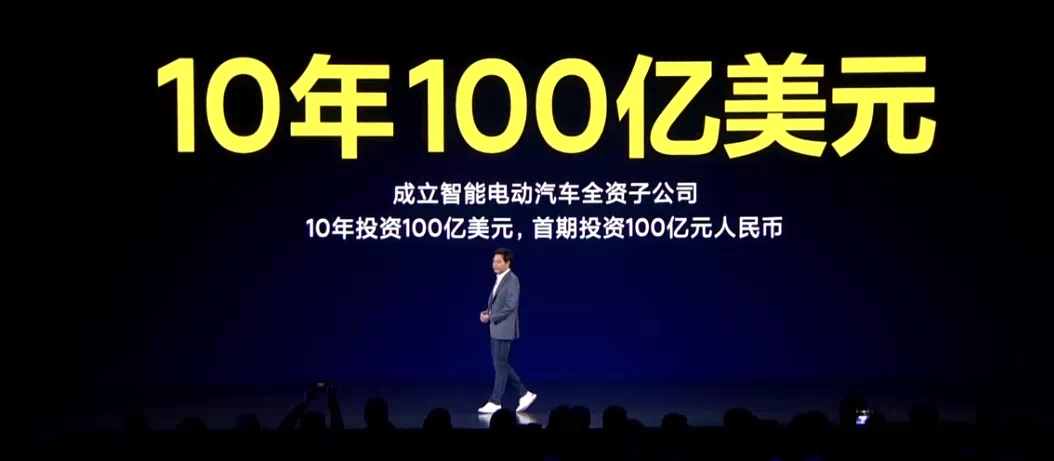 而在未来的10年,小米会调动100亿美元投资汽车,起始注册资金100亿人民币。