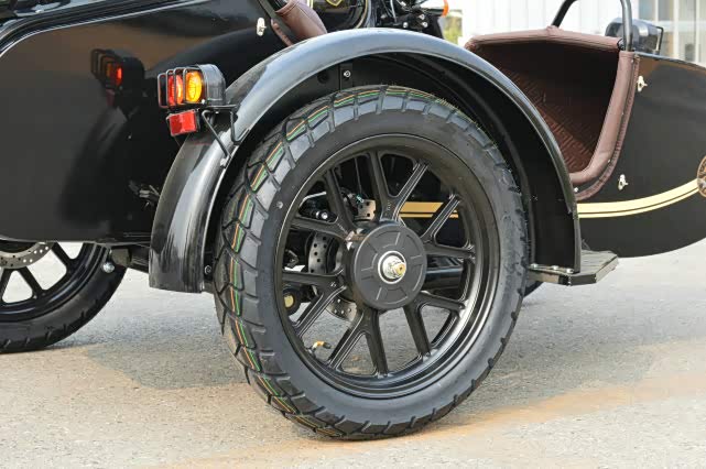 “圆润”的造型让这台边三轮在一定程度上很讨女骑士喜欢,同时与复古风格当中的“圆形”元素契合,让复古风格在这台车上丝毫没有违和感。