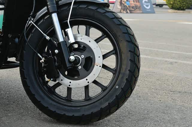 悍路者二代三个车轮均采用碟刹盘的形式制动,边轮与后轮会同步制动,三个轮胎的尺寸一模一样。