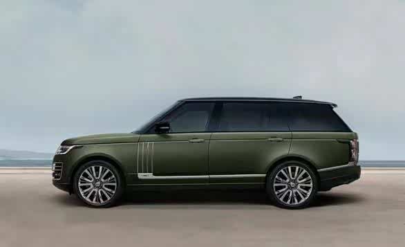 新款车型的外观设计十分独特,尤其是车身采用了黑色和绿色的双色配色,倒梯形的格栅内部为黑色滚花设计,使前脸极具辨识度,同时新款车型的车标标识“ RANGE ROVER”使用了古铜色,使其与众不同,新款车型的轮圈为21英寸。