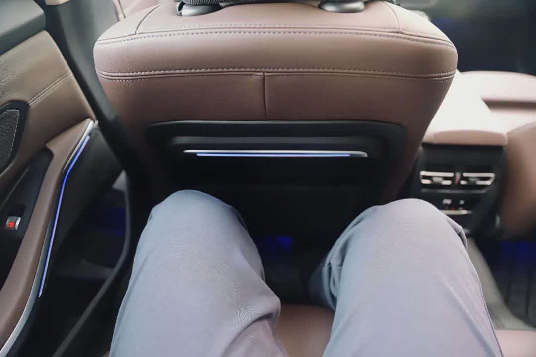 330Li xDrive M运动曜夜因为是长轴距版本,所以空间表现算是合格的,起码后排可以正常地坐人。而标轴版本后排不建议坐身高超过1.8米的小伙伴。另外后排座椅不能放倒,对于空间扩展的表现不太友好。