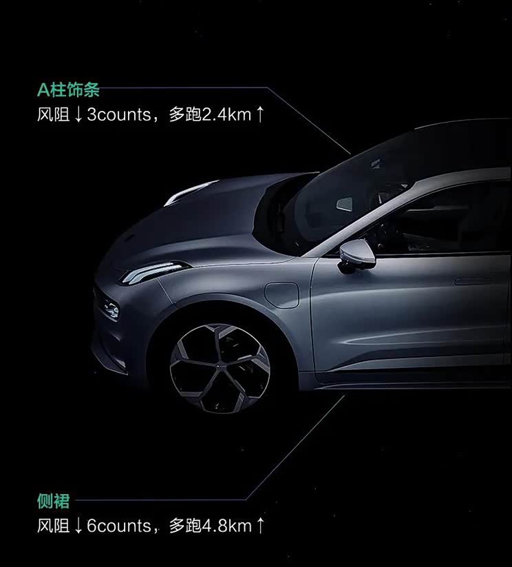 此外,根据资料,极氪001的风阻系数也就是Cd值达到了0.23。这是一个极其优秀的参数。同样能够提升车辆的续航表现。