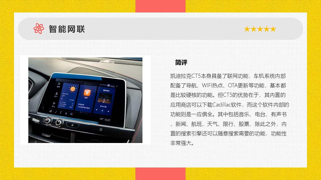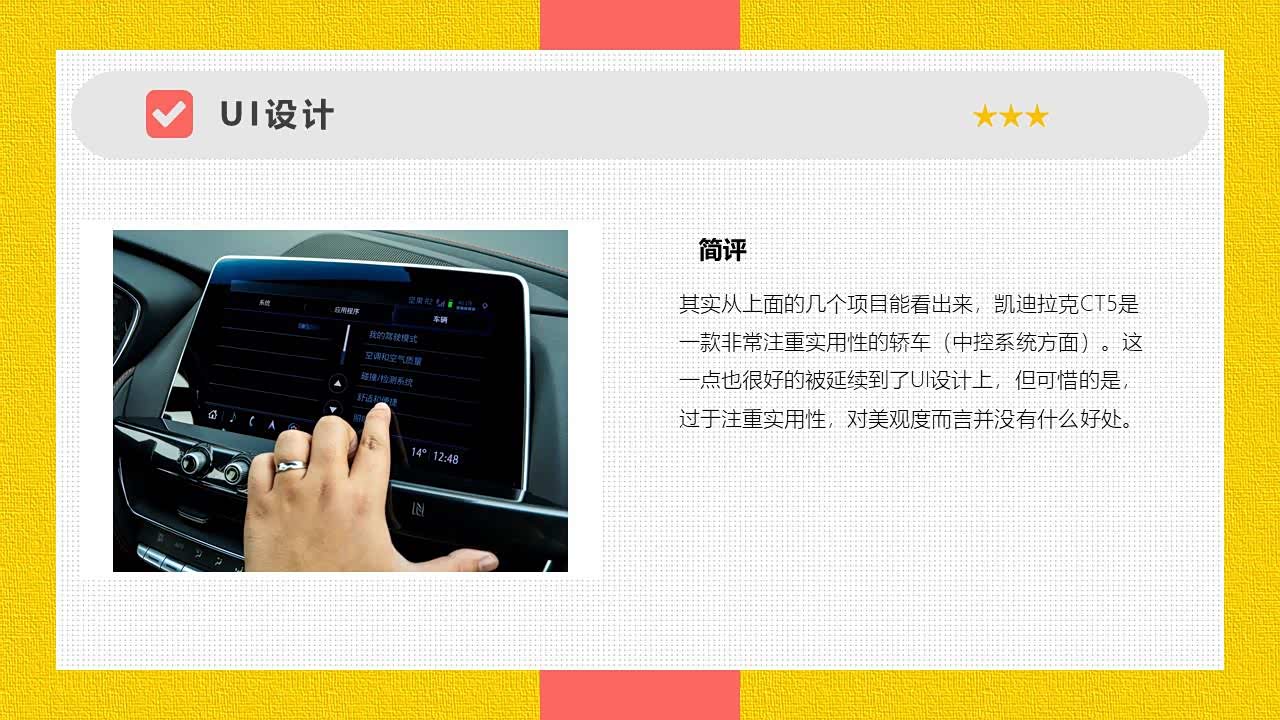 综合来看,UI设计这块凯迪拉克CT5显然没办法拿高分,希望换代时凯迪拉克能继续在美观度上加把力吧。