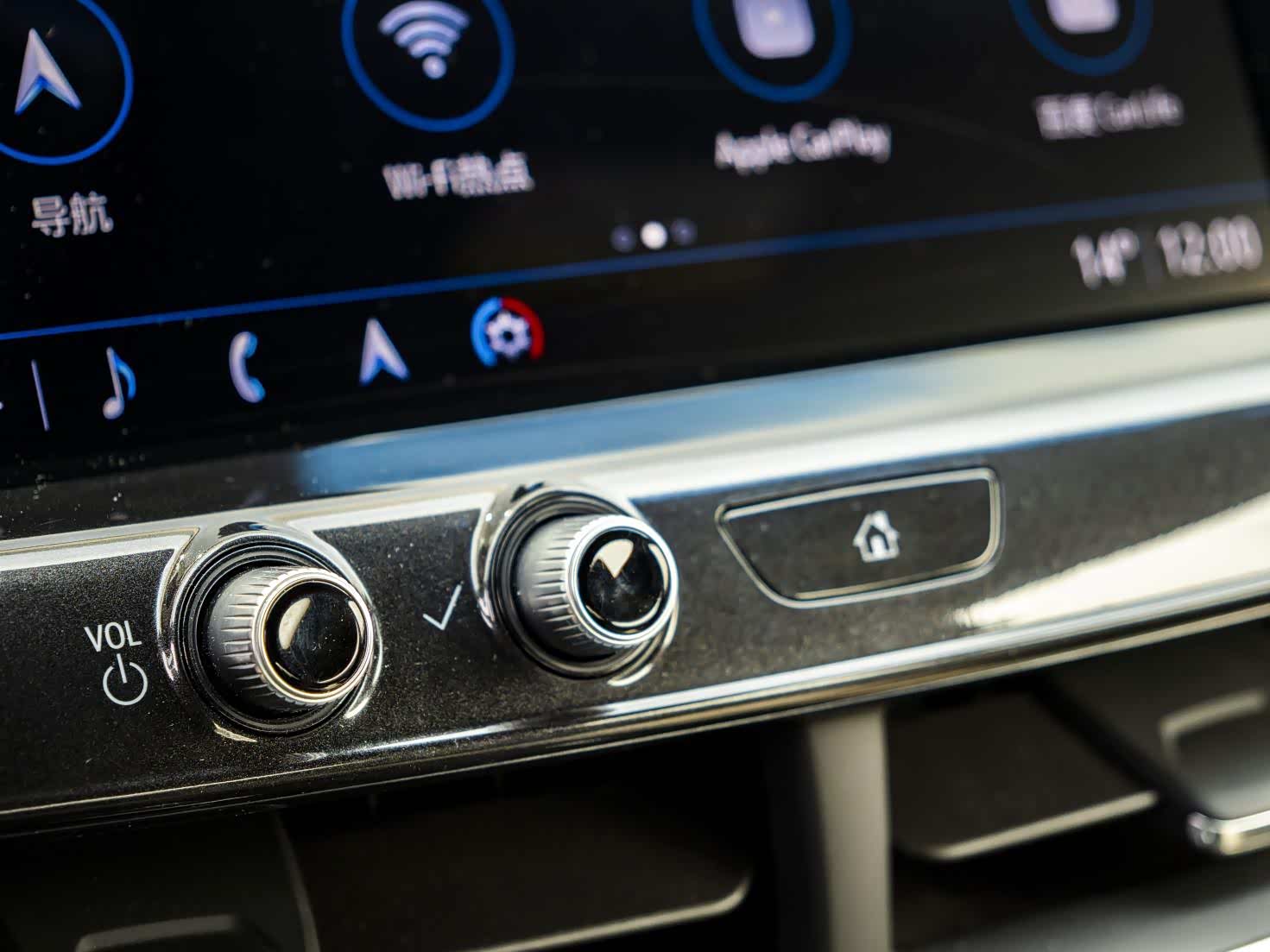 注意!凯迪拉克CT5上非常喜欢使用旋钮,除了中控系统的旋钮之外,中控屏下方也配备了两个旋钮,而且它们能实现的功能与中控系统的旋钮完全一致。这个配置看似多此一举,实际上能够用户在手忙脚乱的时候真真切切的提供帮助,且不说这个亮点的重要性,起码这个想法很好。