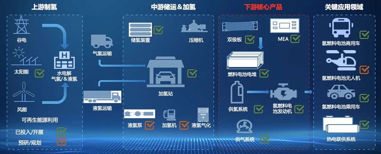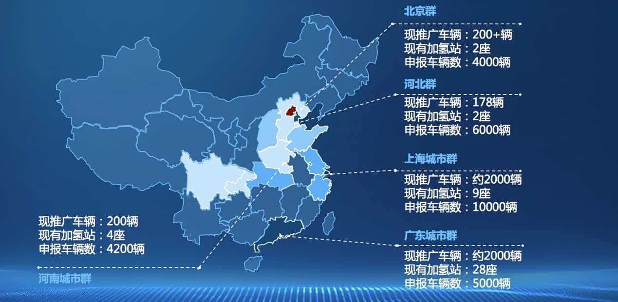 在产业链下游,长城汽车的燃料电池动力系统已经在公交、物流、乘用车、船舶、轨道交通等多个领域展开示范运营,覆盖京津冀、长三角、河南、河北四个重点示范城市群。
