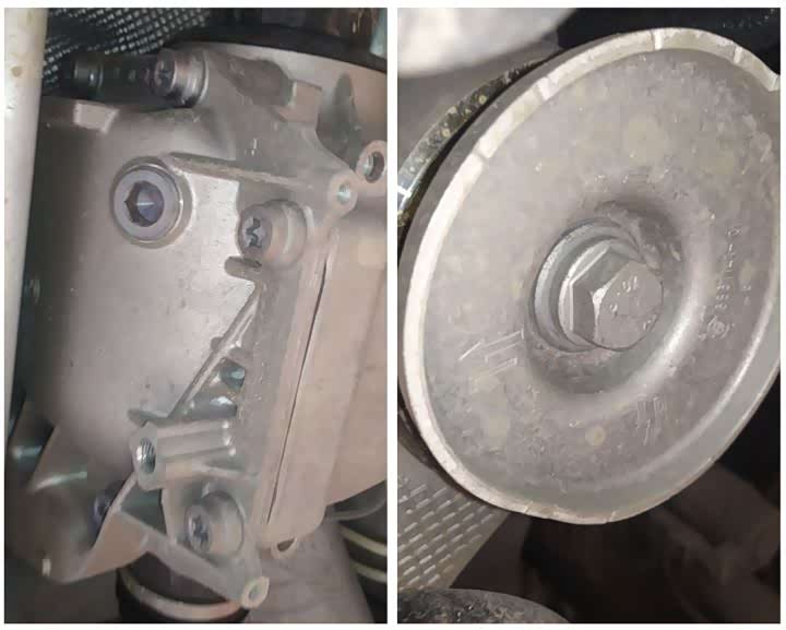 前部副车架,发动机支架固定螺丝未见拆卸拧动痕迹,高压线束走线规整,气门室盖垫,涡轮增压器均未见渗油漏油迹象。