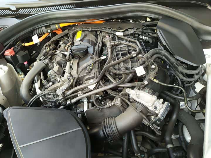 车辆外观检测完毕来到发动机机舱,这辆宝马530Le使用的是宝马第三代eDrive技术,和740Le在技术上完全一致,比上一代530Le整体减重190kg,虽然单单一个2.0T发动机的最大功率只有184马力,但是在加上电动机的动力后可以达到最大功率252马力,最大扭矩420牛米,这个参数和燃油版的530处于一个水平线。
