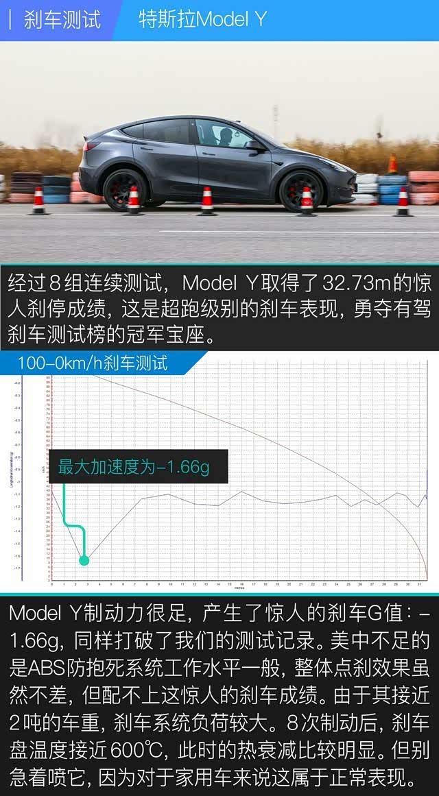 根据有驾评测体系,特斯拉Model Y的刹车成绩再次得到满分!4、麋鹿测试