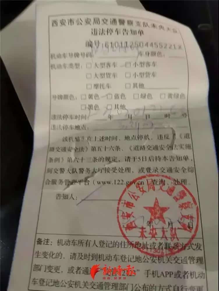 举报人吴勇是陕西西安的一位民警,今年2月,吴勇下班后将车停在方新南路路边,第二天上班时发现车子被贴条,显示违法时间是21:48。