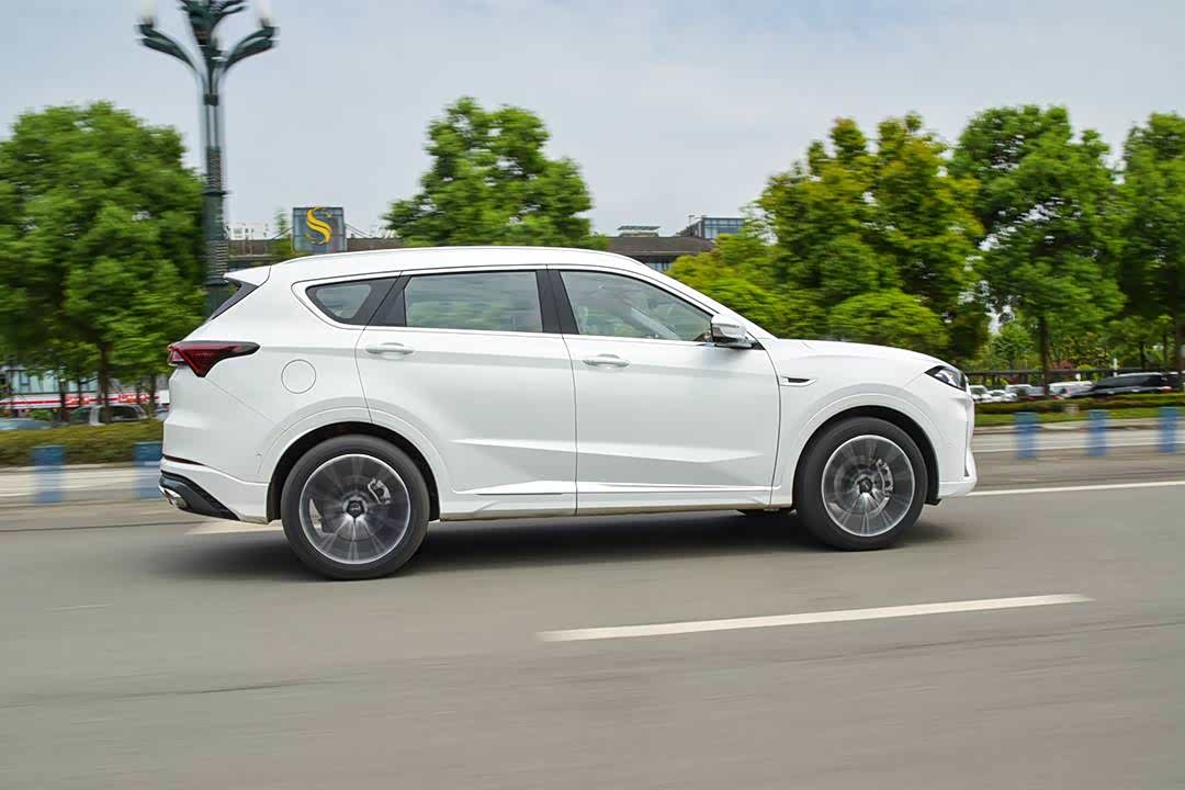 而另外要提到的是,捷途X70 PLUS诸葛版依旧沿用了2021款捷途X70 PLUS使用的大轮毂策略,让车辆在侧面看上去更有稳重感,同时也提升车辆的质感,再搭配上流畅又凌厉的腰线,使车辆更具观赏性。当然,车身侧面必须要提到的就是印有“JETOUR DESIGN”标识的侧尾灯样式,小“Y”字形的使用让人更能近距离感受到,奇瑞捷途在设计上的一些小心思。
