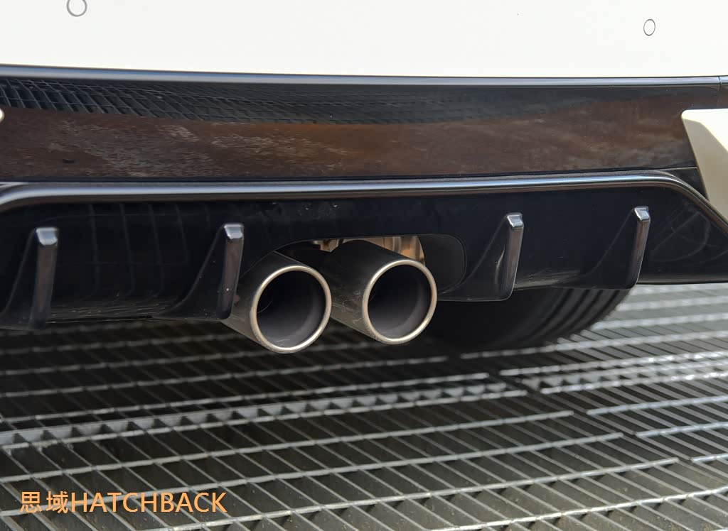 昂克赛拉采用双边共两出的排气布局;而思域HATCHBACK采用中置双出的排气,加上后杠底部的扰流板,也有着性能车的味道。