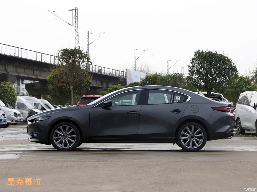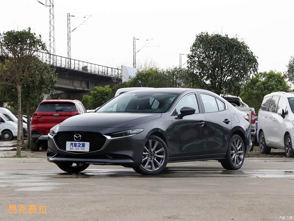 外观方面,昂克赛拉整体延续家族化魂动设计的概念体系设计语言,前脸为大尺寸黑化格栅,格栅外框采用镀铬金属饰条进行装点,并一直延伸至两侧大灯底部。下格栅造型狭长,内部同样进行熏黑处理。车型整体外观年轻、运动,与上代相比并无太多显著的变化。