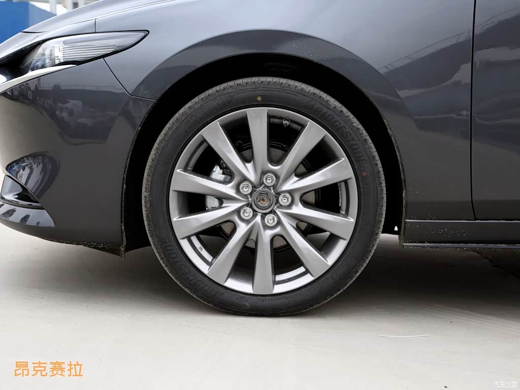 昂克赛拉轮毂采用密辐式设计,18英寸;而思域HATCHBACK为双五辐式漩涡轮毂,尺寸为17英寸。
