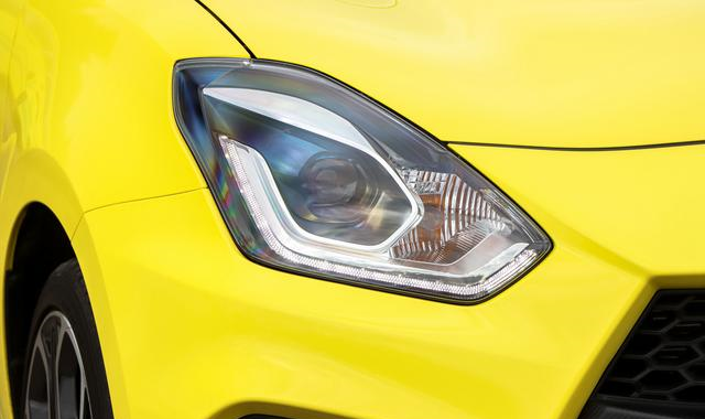 Swift运动小改款并未针对外观改动,延续性能化包装手法,相较一般版本Swift,前脸线条更加锐利,辅以类碳纤纹路下扰流、17寸双色铝制轮毂,摆脱浑圆可爱的风格,更具性能钢砲架势!Swift运动标配LED头灯,灯组下缘配有LED光条式日行灯,让轮廓、辨识度更好,但以灯组科技而言便较为薄弱,无主动远光、转向辅助灯功能,配置维持小车水平也属合理。改款后车尾同样无变动,仅多出Hybrid铭牌来表示动力更动,但视觉呈现本来就够到味,保杆造型与双出尾管整合性高,悬浮式车顶、隐藏式后门把、双色铝制轮毂搭配也很加分,只可惜排气声浪保守,与精悍的外型不太搭调。