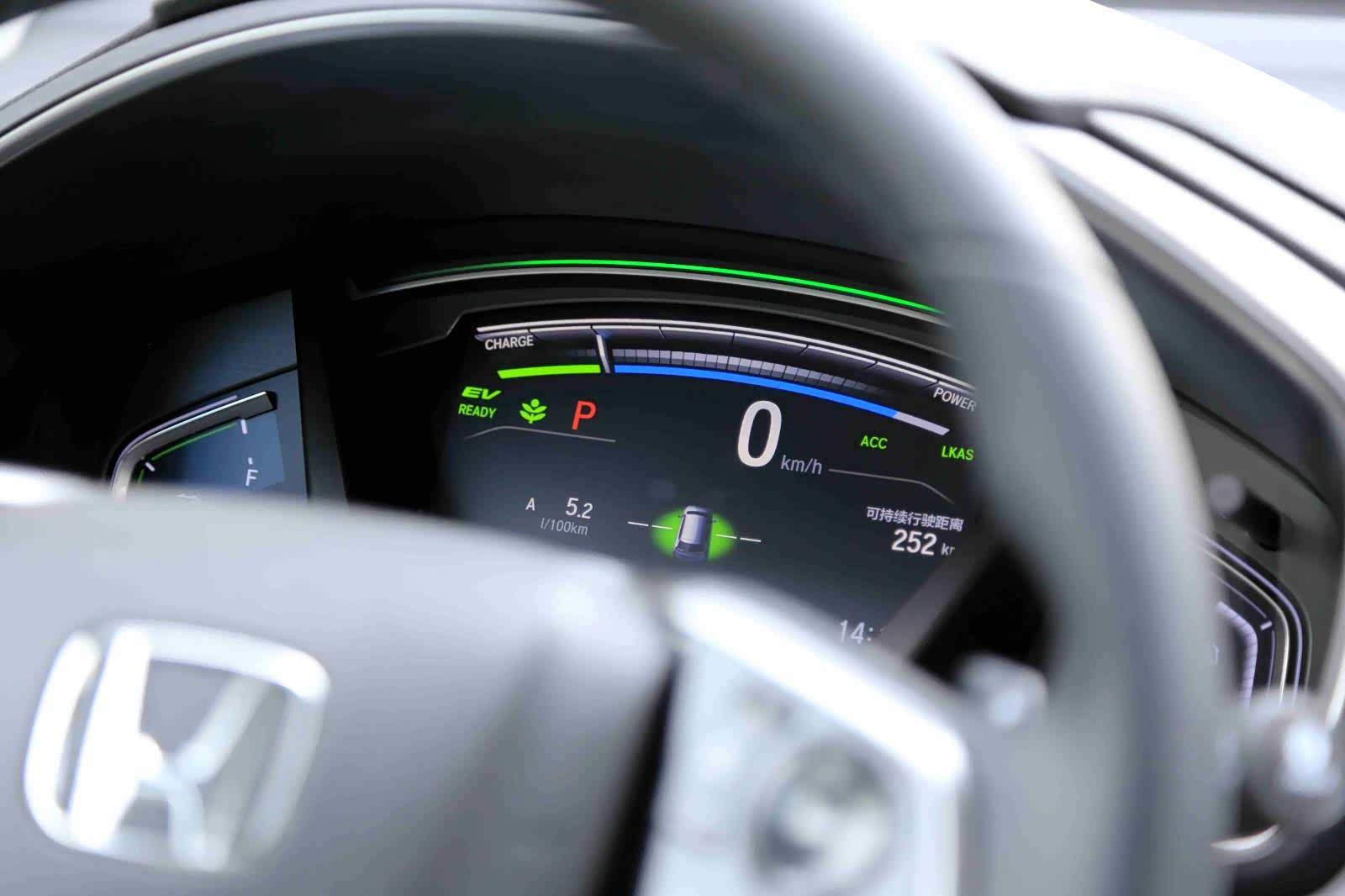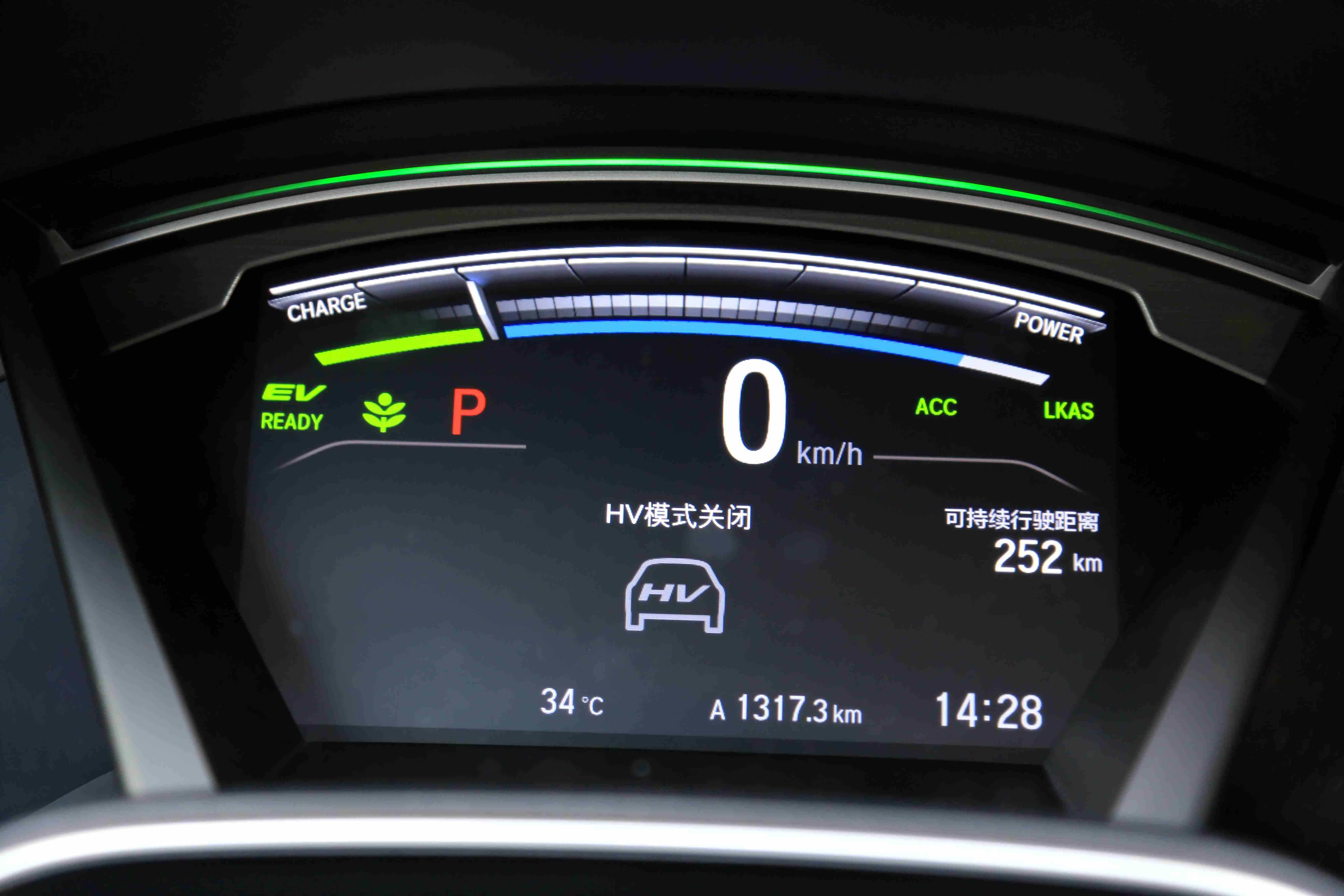 既然是电动行驶为主,液晶仪表必不可少,液晶仪表上蓝色刻度实时反馈纯电行驶容量,其根据驾驶模式和电池电量而变化。如果切换到混动模式,蓝色刻度会瞬间缩短。纯电模式下,CRV锐·混动e+搭载的2.0L自然吸气发动机不会介入工作,只有在电量不足时会启动补充电量,或是急加速需要更多动力时,发动机发电与电池一起带动驱动电机工作,也就是进入了混动模式。混动模式就进入本田第三代I-MMD混动系统工作范畴。