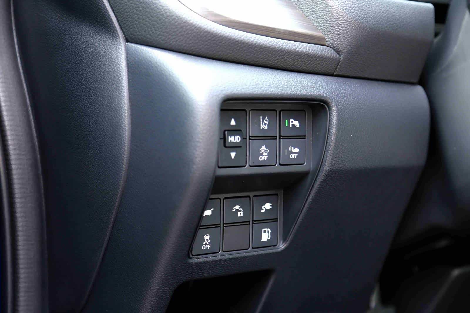 操控方面也是熟悉的味道,非常好上手,按键式换挡、多功能三辐方向盘、可升降HUD(抬头显示系统)等,而且HUD控制不但在方向盘上可以调节,还可以在方向盘左侧空调出风口下部调节,这里集中了后备厢开启、油箱盖打开、充电盖打开等功能。
