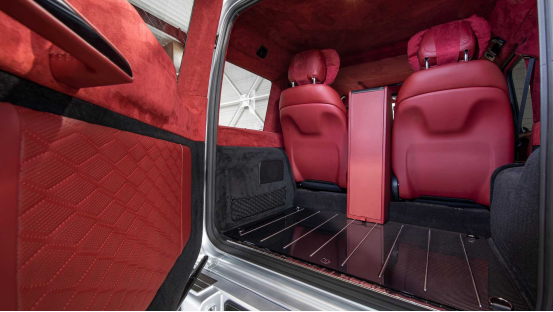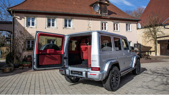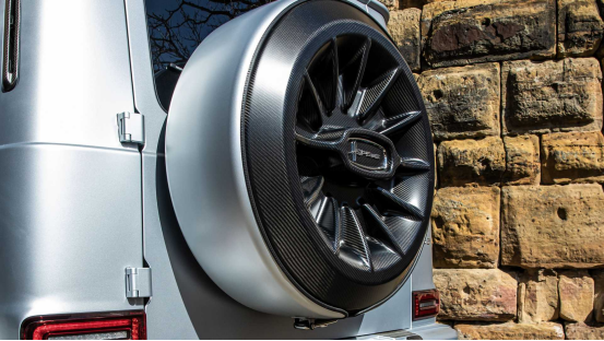 在尾部的外挂备胎上则是使用了碳纤维护盖,低调奢华。